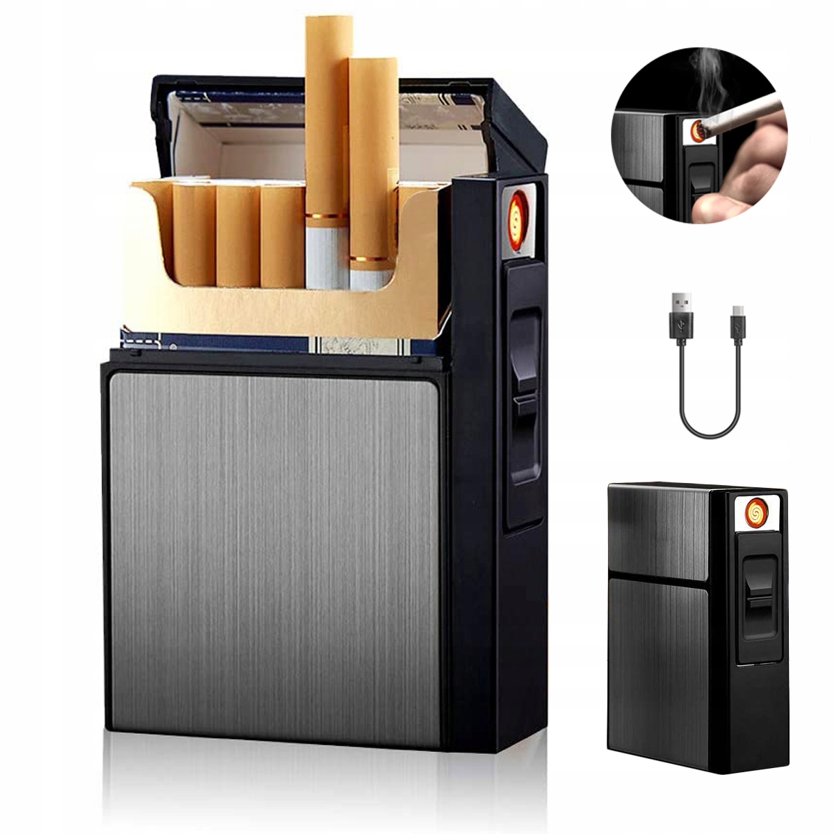 ЗАПАЛЮВАЛЬНИЦЯ і ПОРТАЖ 2в1 НА 20 СИГАРЕТ USB ПОДАРУНОК