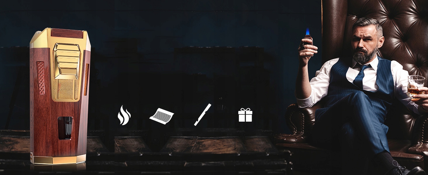 ЗАЖИГАЛКА ГОРЕЛКА ДЛЯ СИГАРЫ 2 ГОРЕЛКИ ВЕТРОЗАЩИТНЫЙ ЭЛЕГАНТНЫЙ ДИЗАЙН
