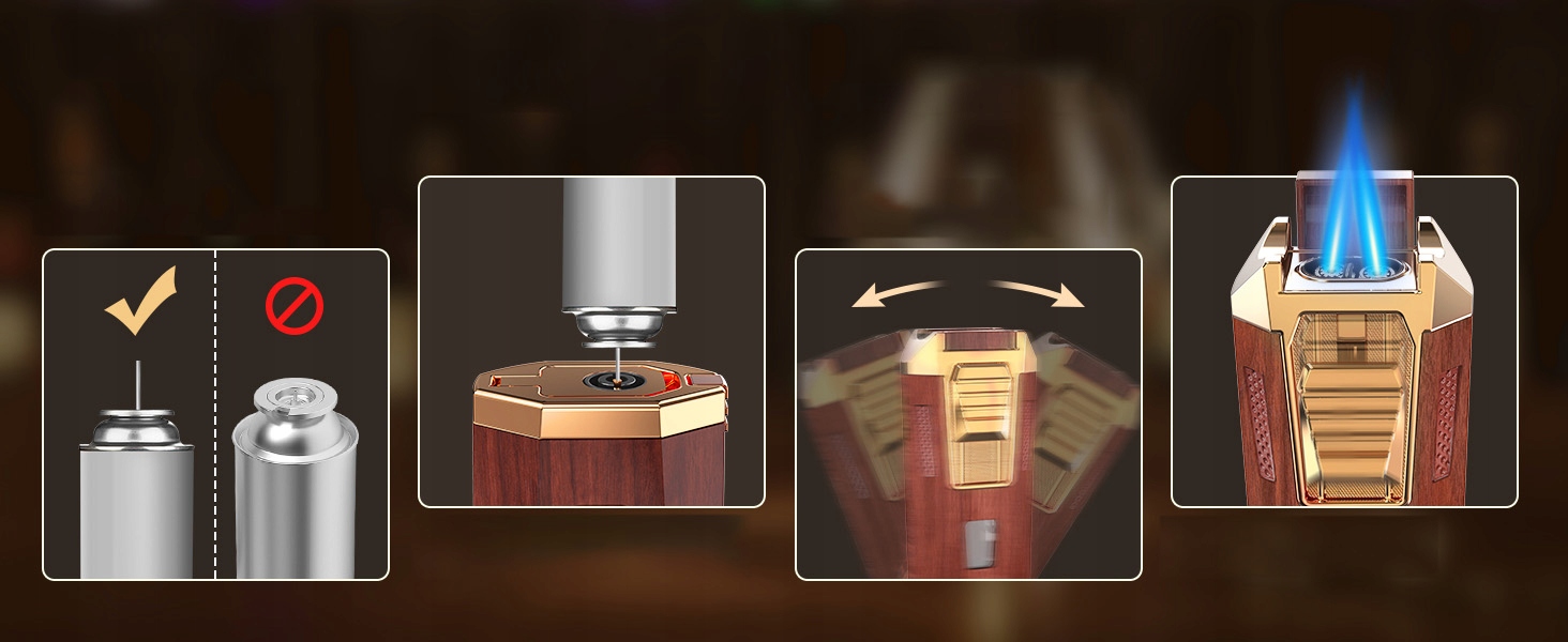 Эта зажигалка состоит из двух горелок, которые производят сильное и мощное пламя, устойчивого к высоким температурам порта горелки, который производит пламя быстро и равномерно, и пламени с двумя горелками, ветрозащитного и мощного. Даже в ветреную погоду зажигалка может легко и быстро зажечь пламя. Отвечает вашим потребностям в различных ситуациях.