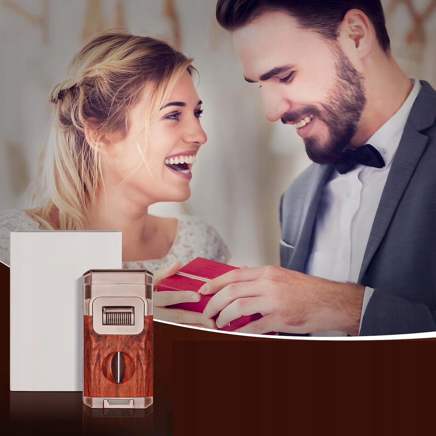 Эта ветрозащитная бутановая зажигалка не только подходит для зажигания свечей и кемпинга, но и ее практичный дизайн, включая прилагаемый держатель для сигар и резак, делает ее идеальным выбором для клубных сигар. Теплый и неповторимый внешний вид в сочетании с элегантной подарочной упаковкой. Дарите ли вы его любителям сигар или родственникам и друзьям на дни рождения, праздники или юбилеи, это очень продуманный выбор.