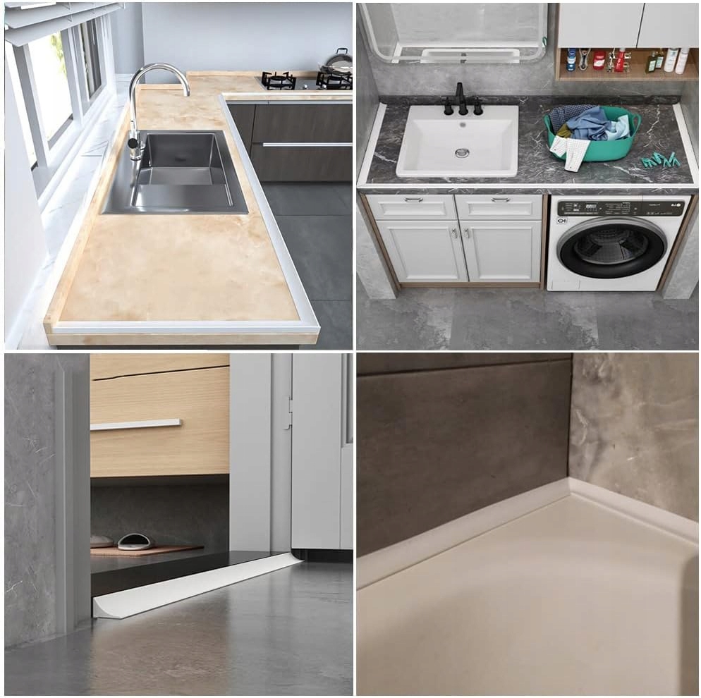 👍👍Широкий спектр применения:1. Чехол для душа можно использовать по краям столешницы (кухонные раковины, туалетные столики во влажных помещениях, подоконники, края ванн). 2. Можно использовать в качестве порогов (двери спальни, двери ванной комнаты). 3. Может использоваться для блокировки зазоров 0–20 мм (между столешницей и стеной, между полом и стеной).