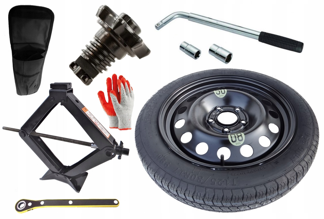 Домкрат, гаечный ключ и перчатки позволяют быстро заменить колесо в случае экстренной поломки