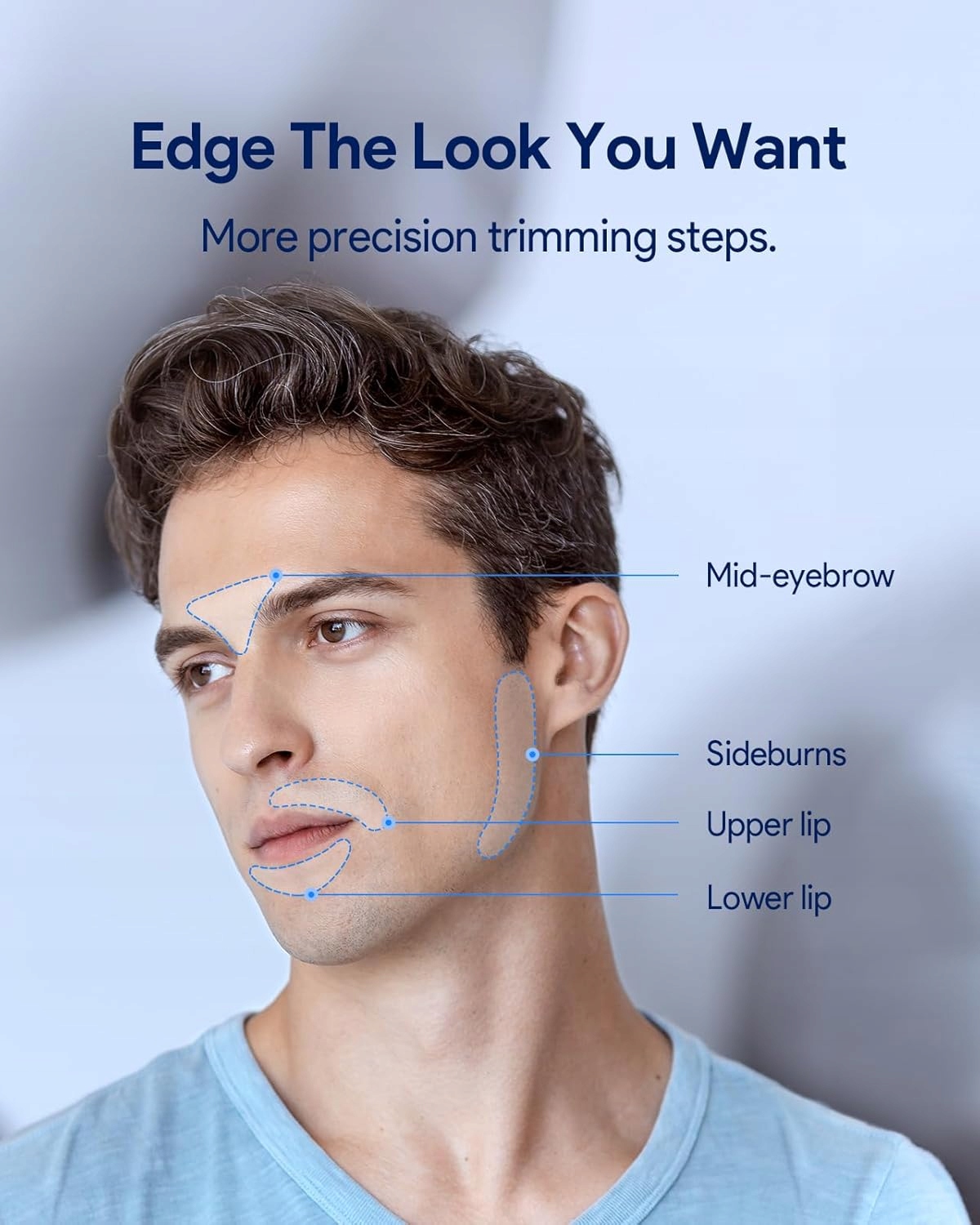 - Острая стрижка: триммер Yinke Precision Trimmer, оснащенный самозатачивающимися керамическими лезвиями, эффективно захватывает и срезает волосы, делая бритье более быстрым и комфортным. Избегайте дискомфорта, вызванного повторяющимися движениями во время бритья.