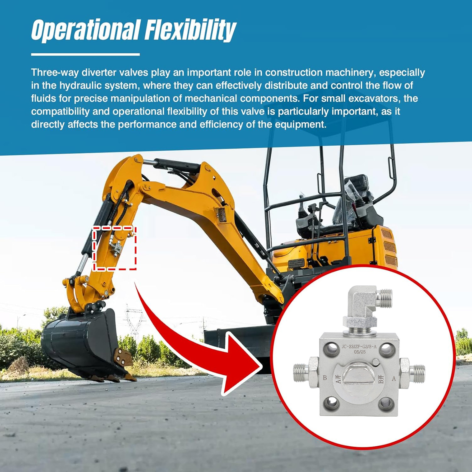 1. Большая универсальность: трехходовой распределительный клапан подходит для большинства небольших экскаваторов, позволяя операторам легко переключаться между несколькими гидравлическими аксессуарами