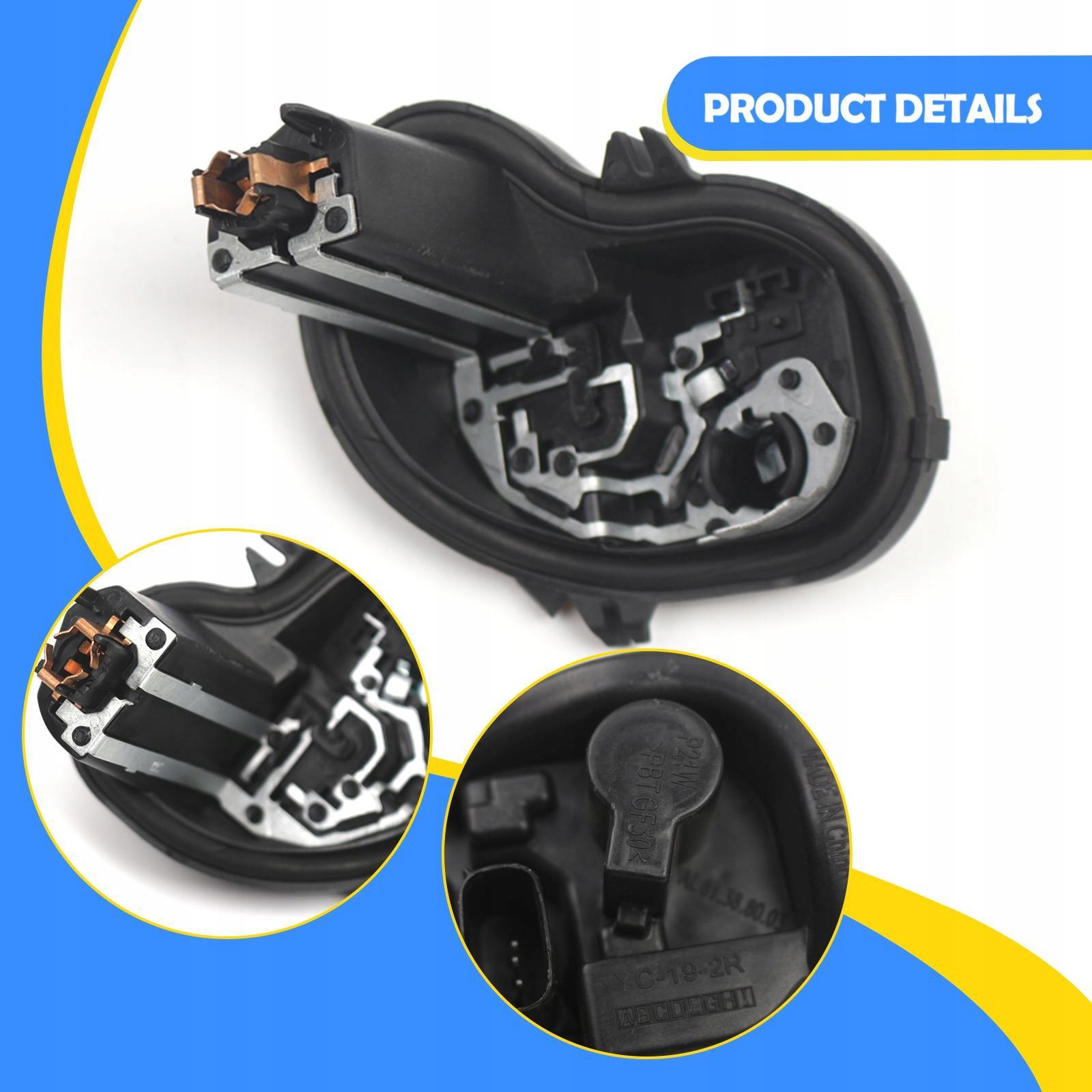 [Материал] Держатель лампы заднего фонаря изготовлен из металла и полипропилена, легкий, но прочный. Держатель лампы заднего фонаря может заменить сломанный или изношенный держатель лампы.