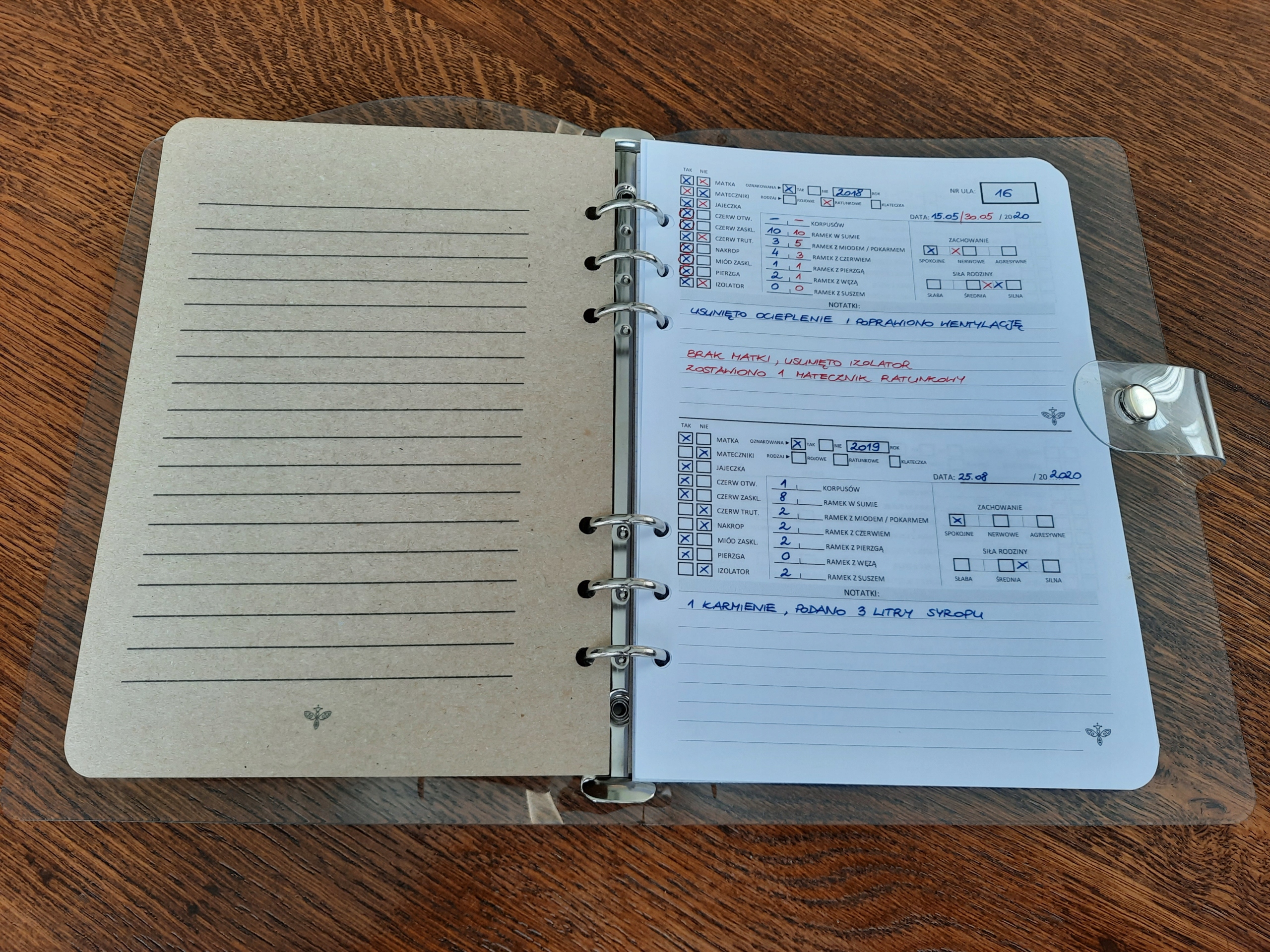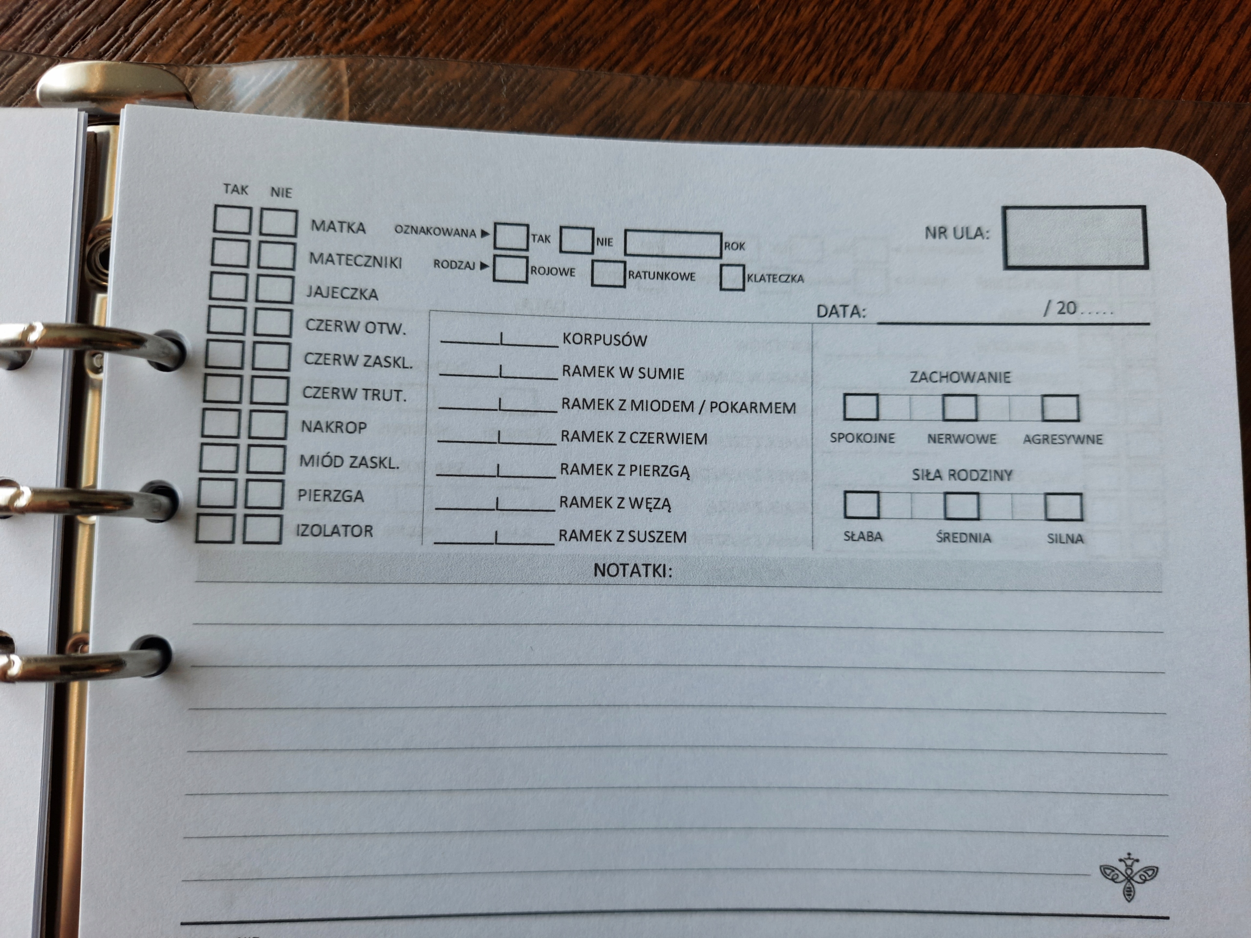 Благодаря «Блокноту пчеловодства», который открывается как скоросшиватель, вы можете легко добавлять, удалять или переставлять карты ульев.