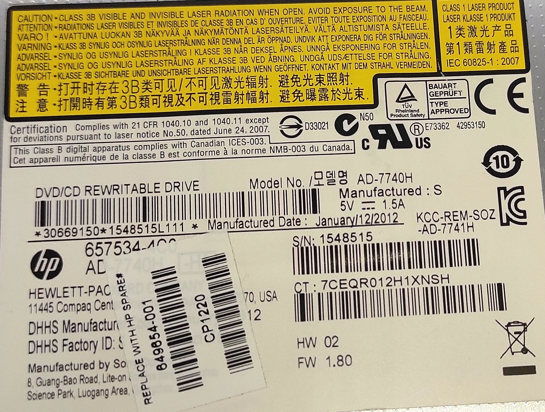 Предмет продажи - б/у, полнофункциональный (проверенный) рекордер - DVD привод, модель: DS-8A9SH (и AD-7740H или SN-208) для ноутбука HP ProBook 6560b . Визуальное состояние соответствует фотографиям, товар отправляется случайным образом из имеющихся в наличии.