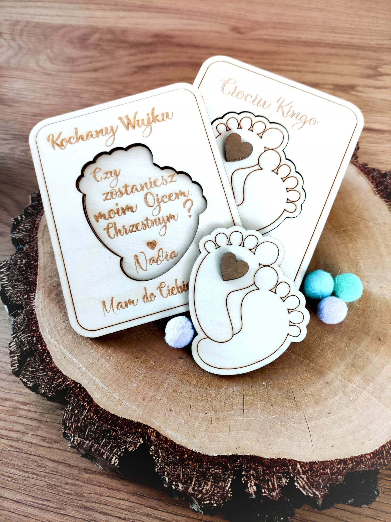 Деревянная тарелка в стиле бохо со съемными ножками... и вопрос под ногами Ты будешь моей крестной? Ты будешь моим крестным отцом? И имя вашего малыша. Такая форма запроса наверняка вызовет улыбку на лицах будущих крестных родителей. На ножках приклеено маленькое золотое сердечко, позволяющее открыть коробочку с вопросом.