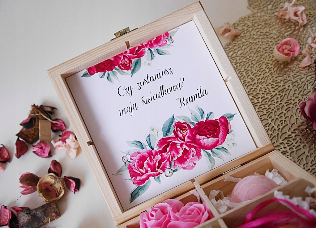 коробка для свидетеля. Богатый набор по привлекательной цене. Коробка отличается персонализацией, специально упакована для выбранного человека. Крышка и центр созданы специально для вас. Графика в белом и темно -розовом. Gift