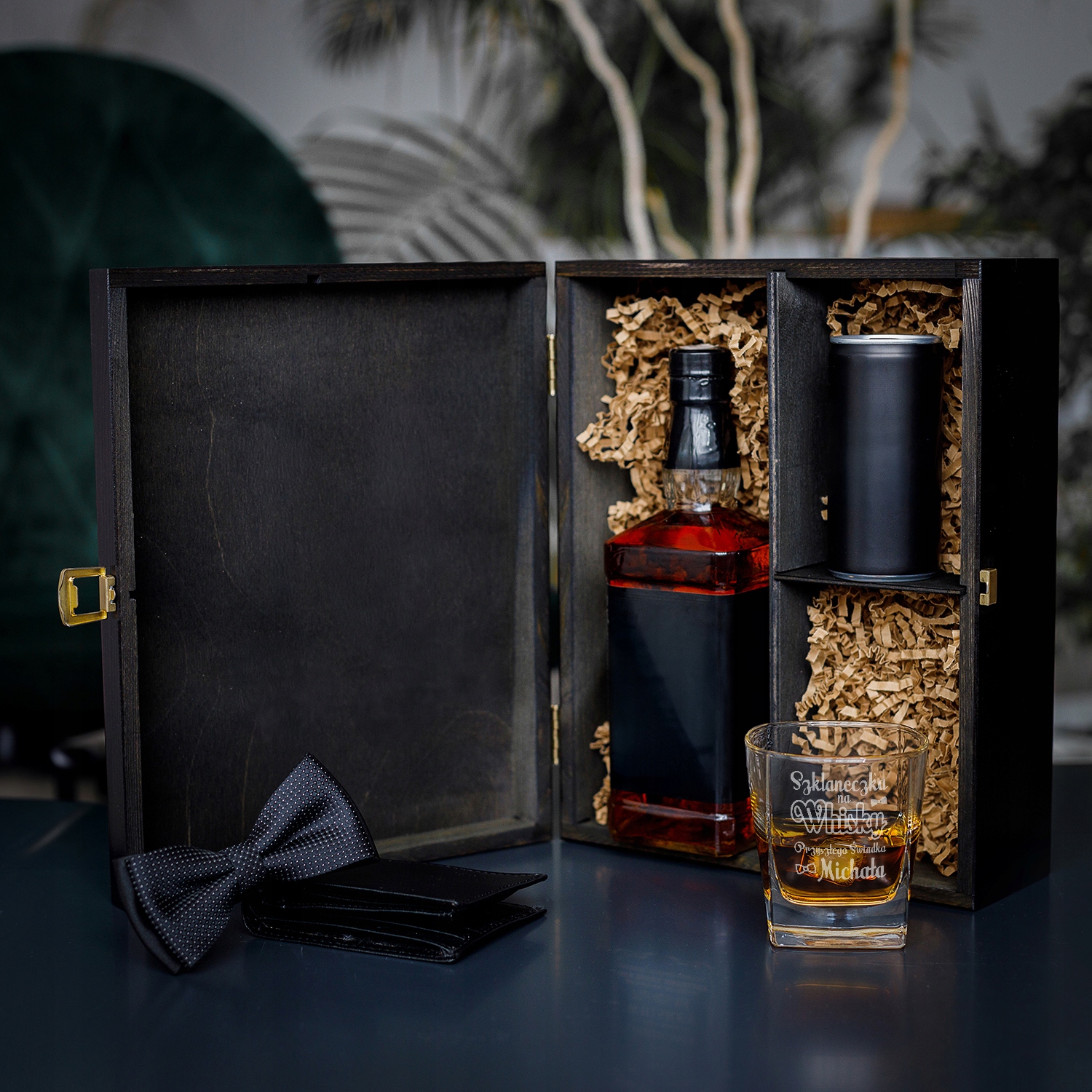 ✳ Элегантная коробка изготовлена из древесины высочайшего качества, окрашивается и вощена, имеет наполнение бумажных чипсов. Это позволит вам дать вам бутылку хорошо известного напитка таким образом, что не только он станет подарком, но и его упаковкой.