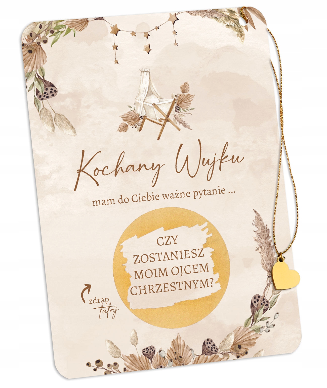 Оригинальный способ для ребенка попросить дядю стать ему крестным отцом. Вопрос был помещен под наклейку/скретч-карту. Чтобы их обнаружить, соскребите верхний слой золотого круга с прикрепленным сердечком.