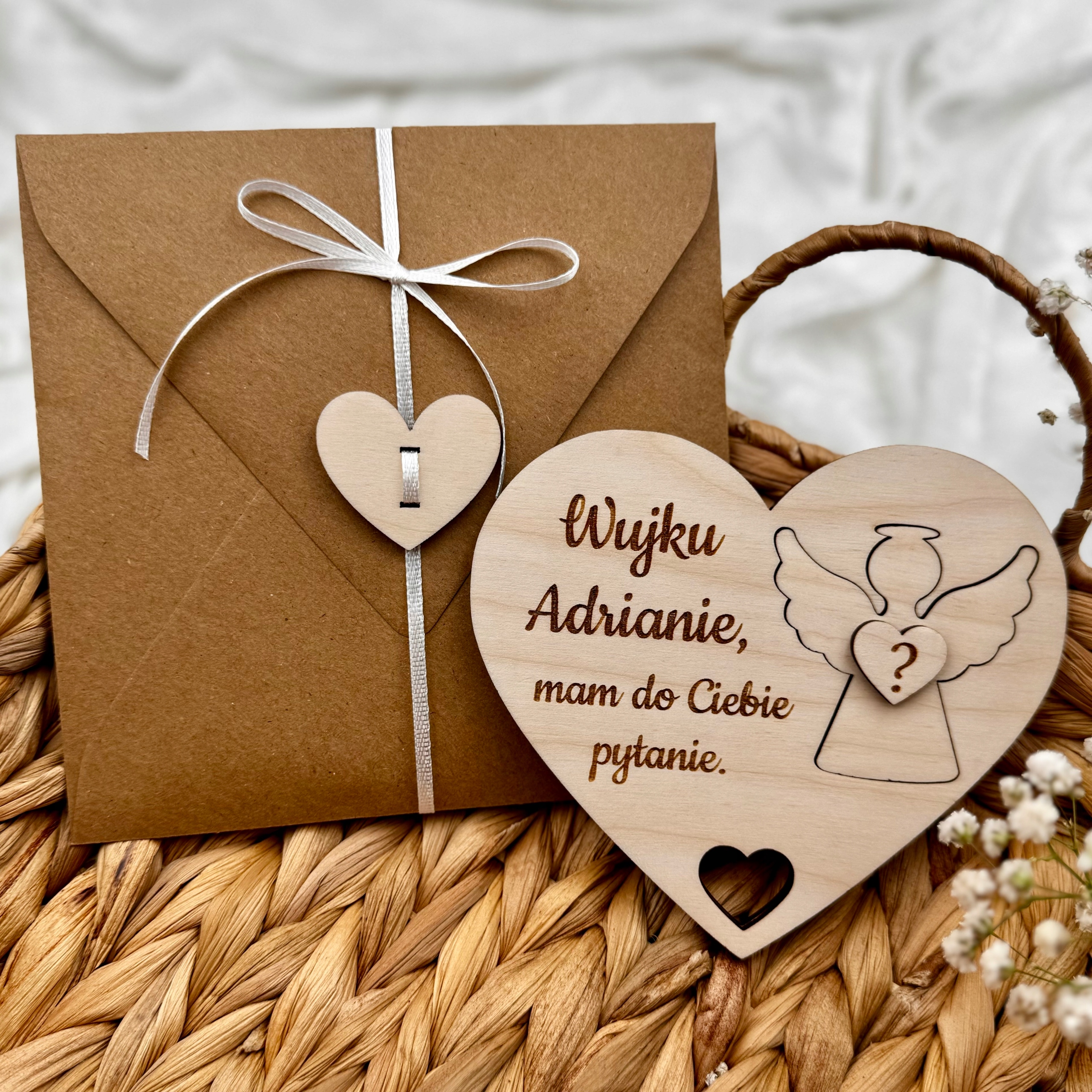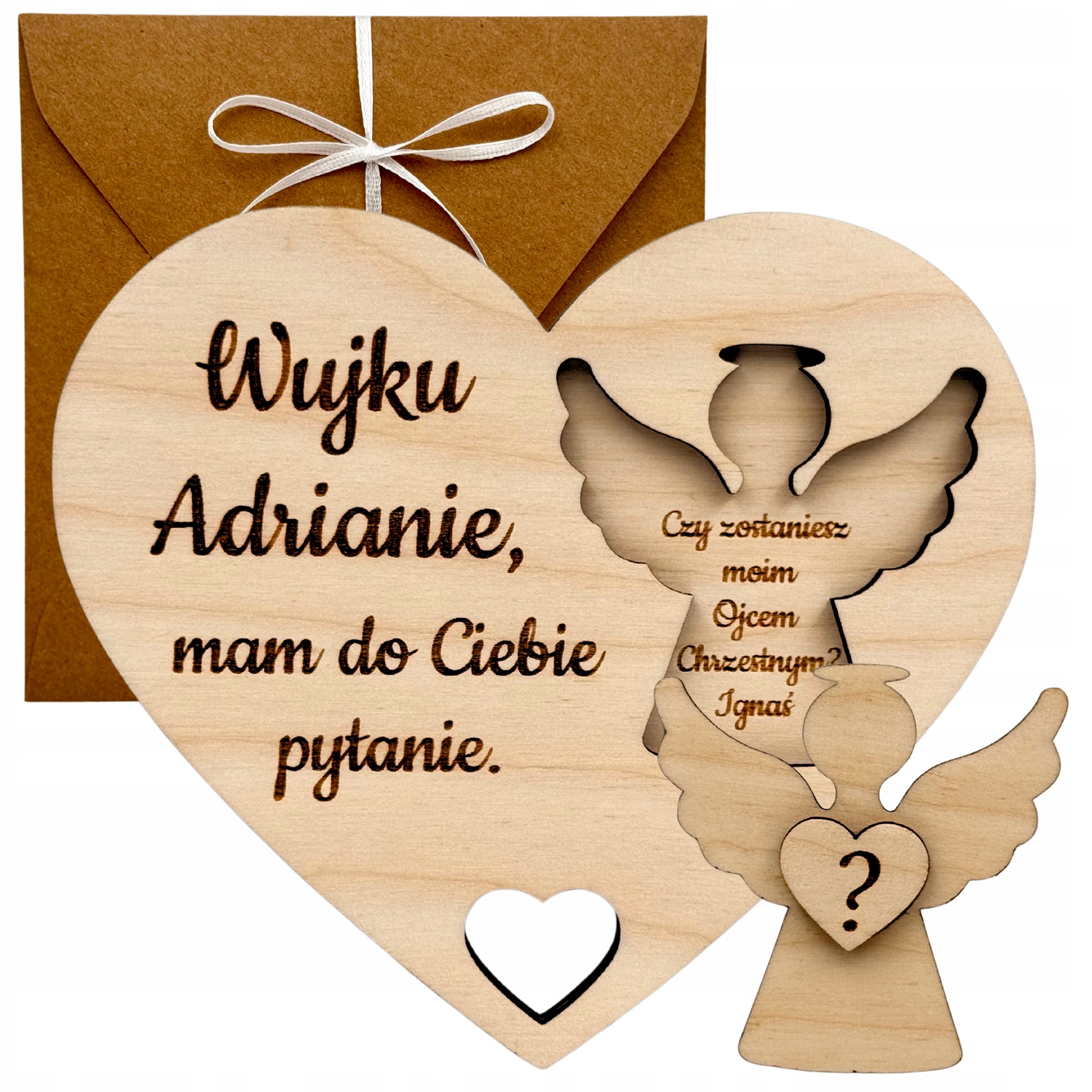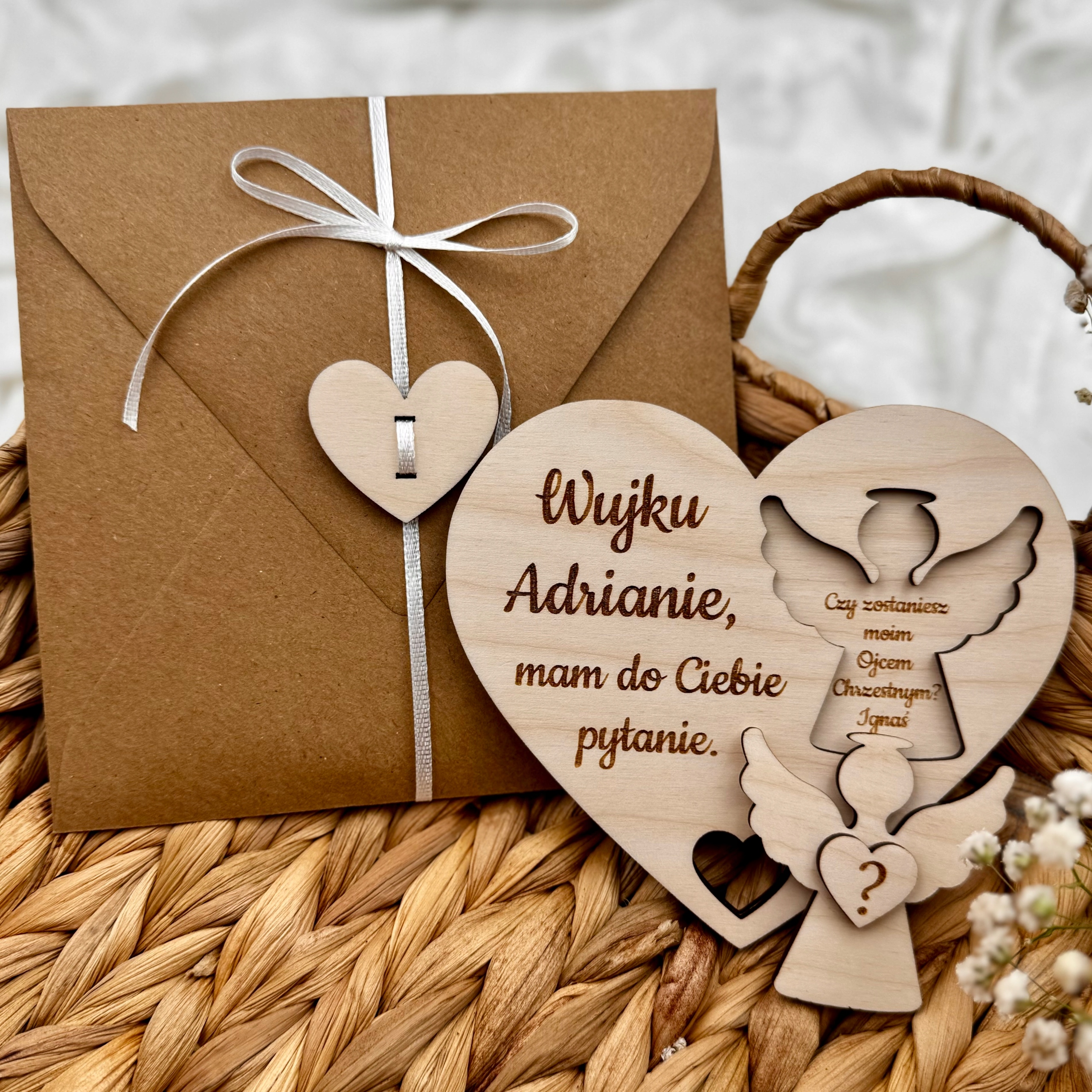 ❤ Мы предлагаем уникальное предложение, чтобы спросить о том, чтобы быть крестным отцом - сердце с порезанным ангелом из дерева высшего качества.
