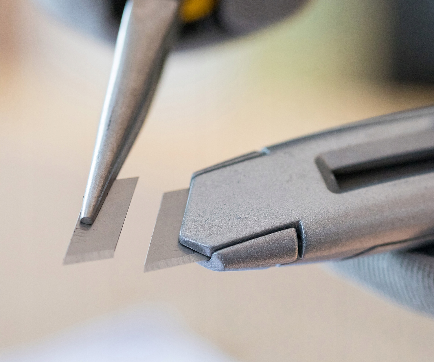 - Нож в металлическом корпусе, оснащенном сломанным лезвием 18 мм,