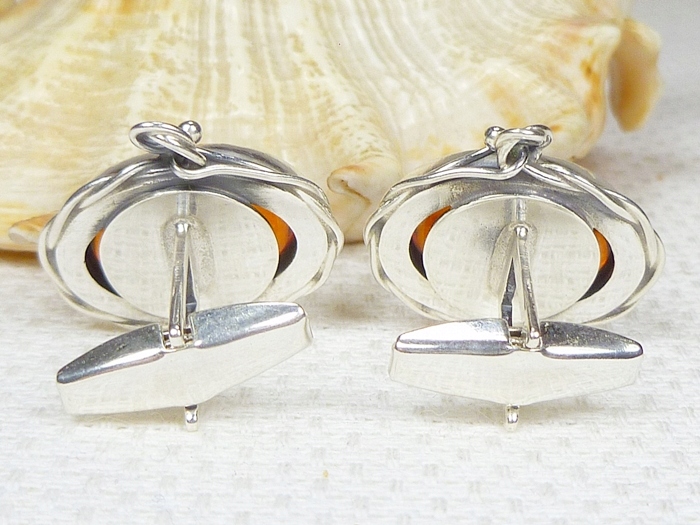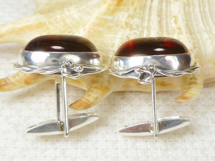 Запонки 814/82 Срібло з бурштином - РУЧНА РОБОТА-