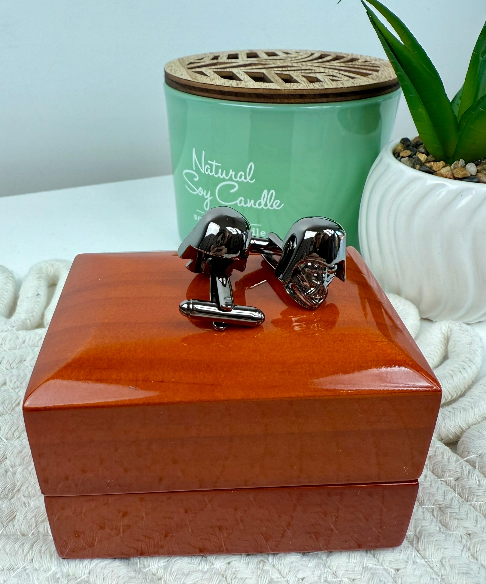 Запонки упакованы в деревянную коробку с глянцевым покрытием