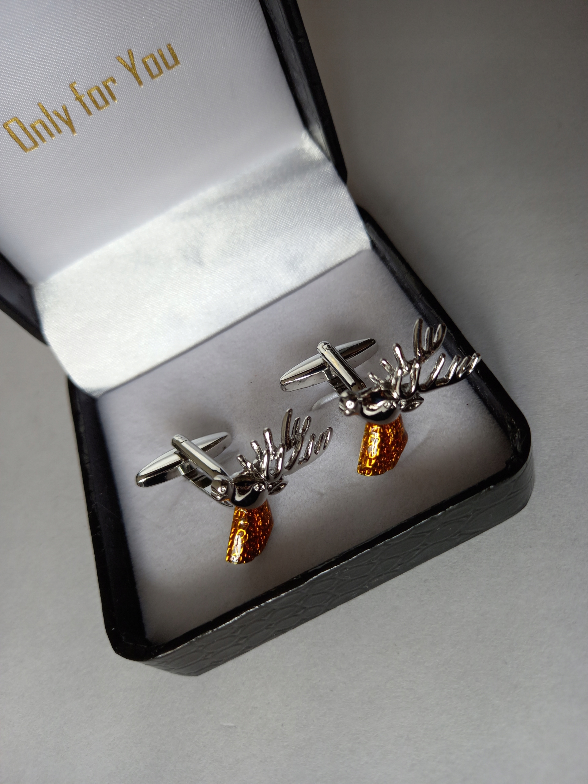 Оригинальные запонки для захватывающей рубашки в форме головы оленя с великолепными рогами. Запонки были упакованы в красивую коробку захватывающего корпуса. Очень интересные запонки, идеально подходит для подарочного подарка для лесника или охотника