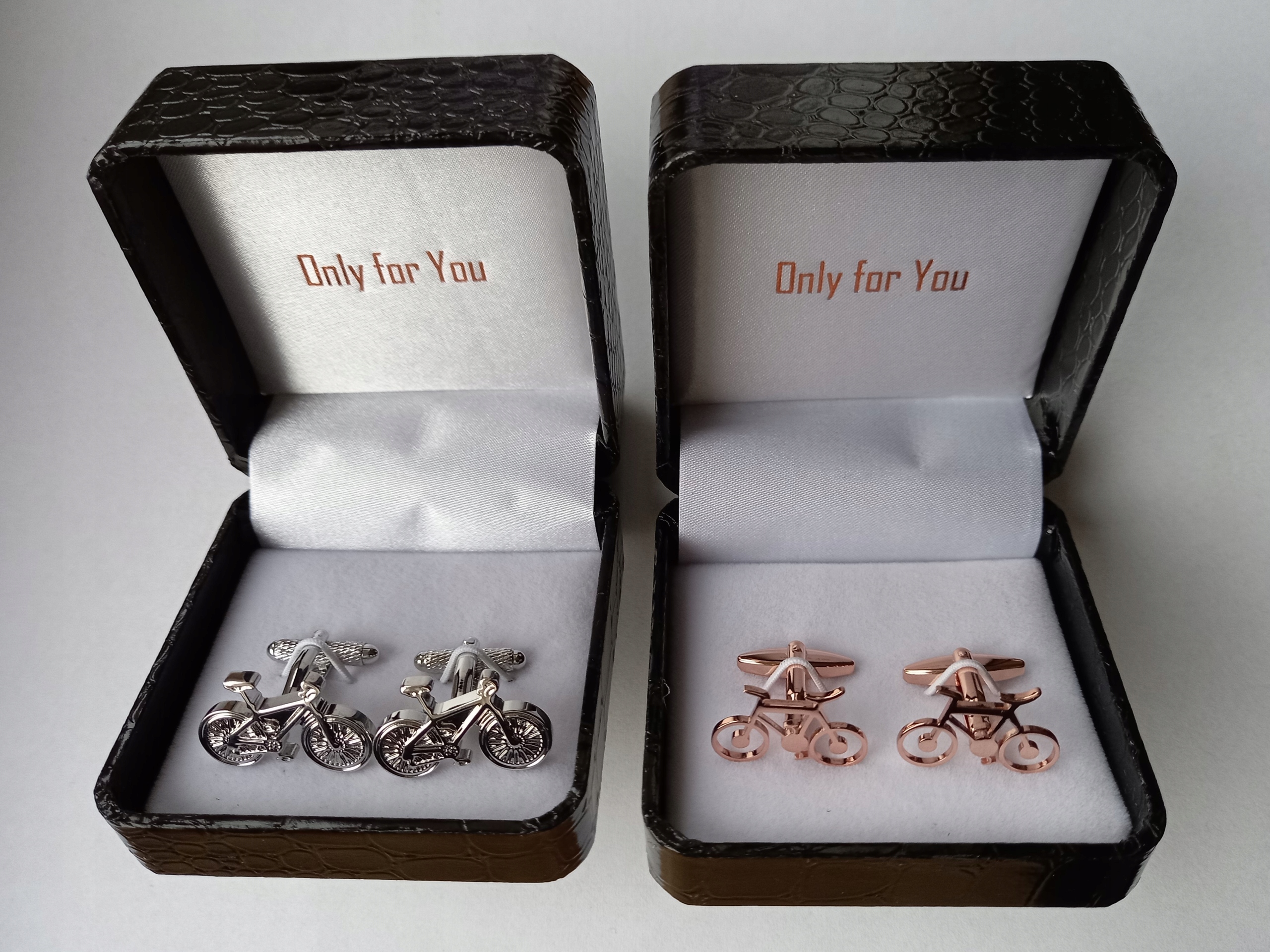 Набор из пары запонок производства Мануфактуры запонок Exciting g в виде миниатюрных Ретро Велосипедов в цвете Старое Серебро, упакованных в аккуратный эксклюзивный футляр для запонок. Такие красиво оформленные и изготовленные запонки – прекрасная идея для оригинального и интересного, но в то же время практичного подарка элегантному мужчине.