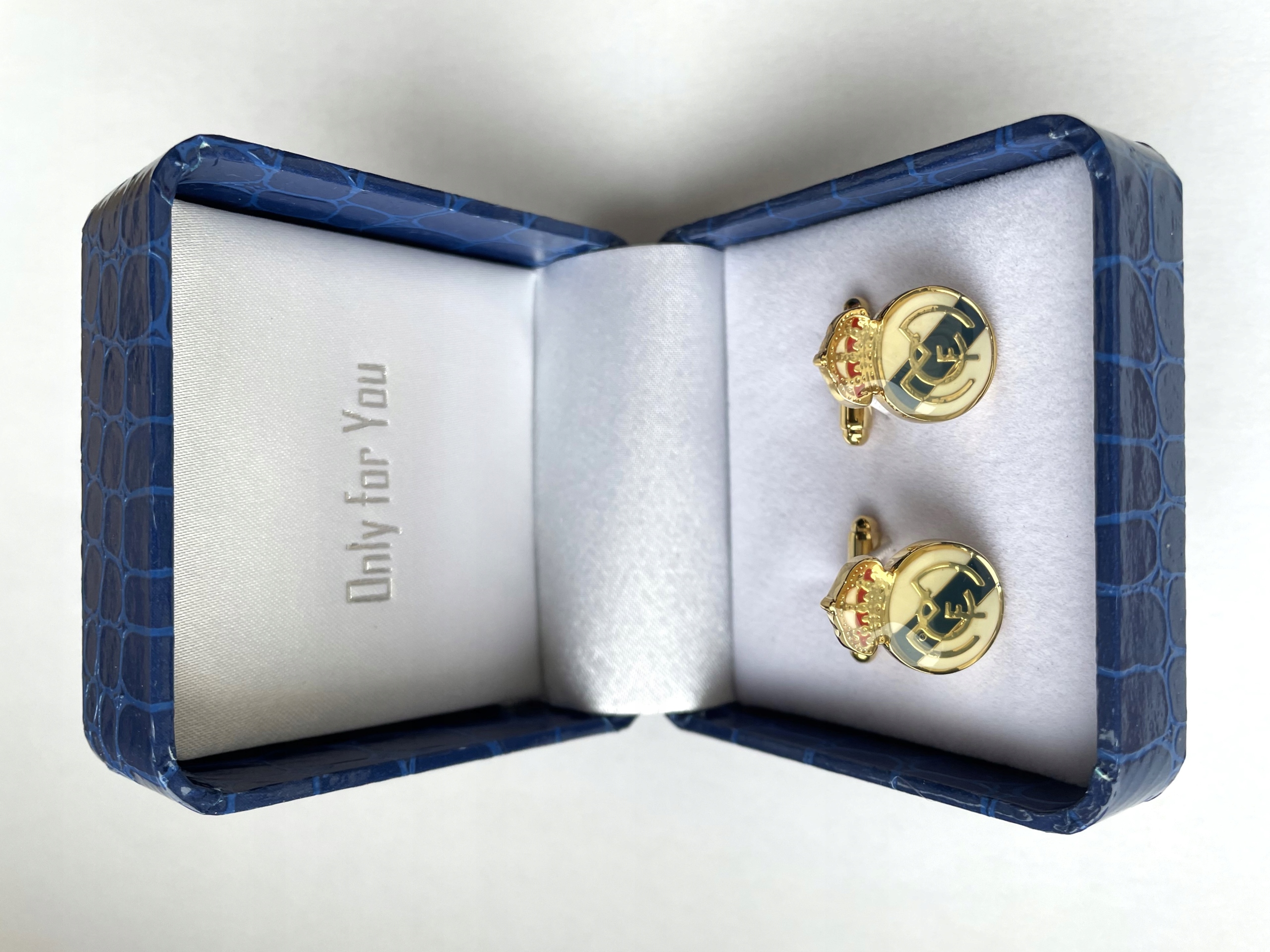 Модный комплект из пары запонок для рубашки в элегантной белой коробочке станет эффектным, интересным и в то же время практичным подарком элегантному мужчине, увлеченному футболом.
