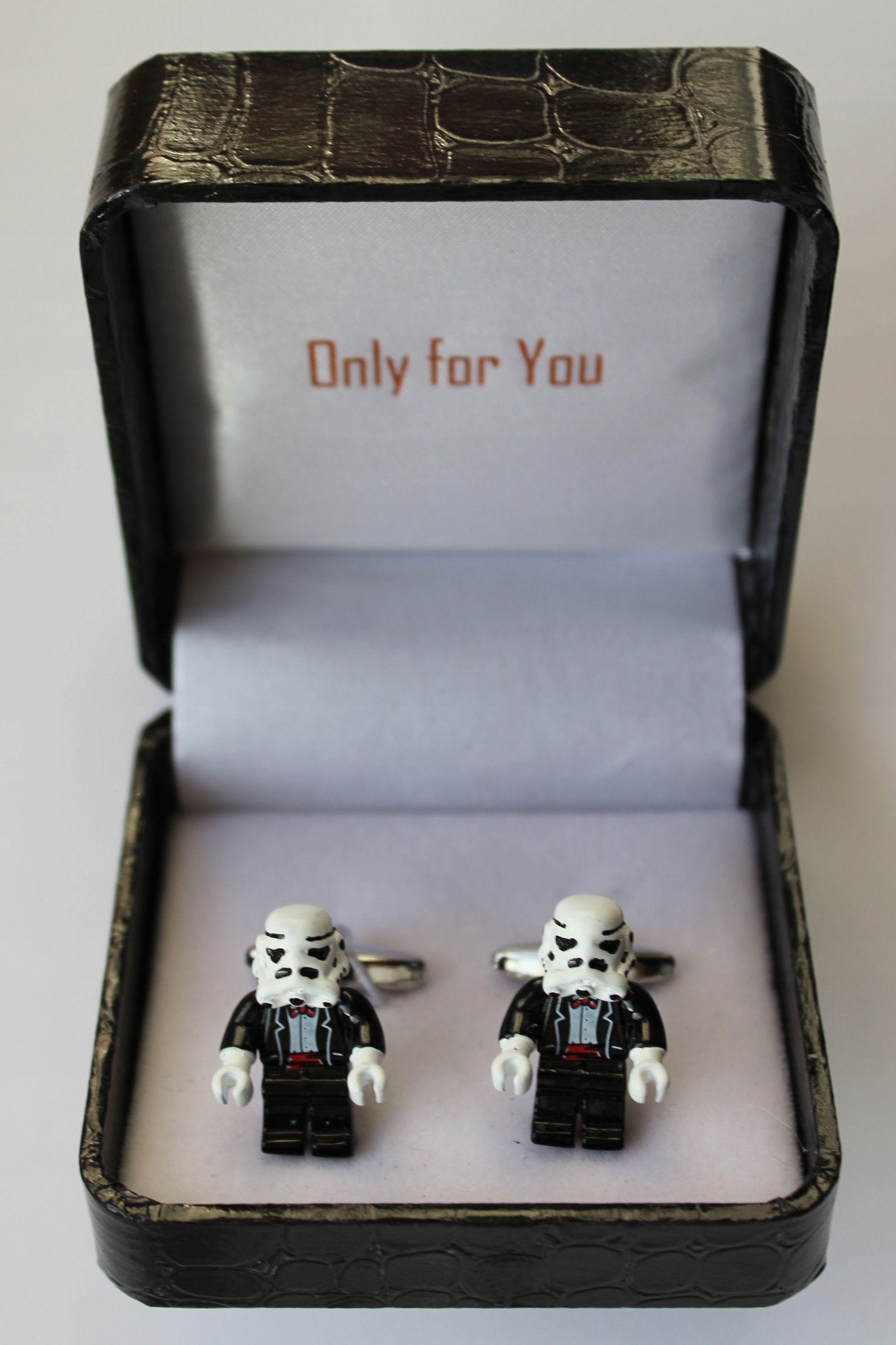 Набор из пары запонок производства Мануфактуры запонок Exciting g в виде фигурки Lego Star Wars упакован во впечатляющий, роскошный футляр для запонок. Такие красиво оформленные и изготовленные запонки - отличная идея для оригинального и интересного, но в то же время практичного подарка элегантному мужчине. Идеальный подарок, особенно для так называемого большие мальчики.