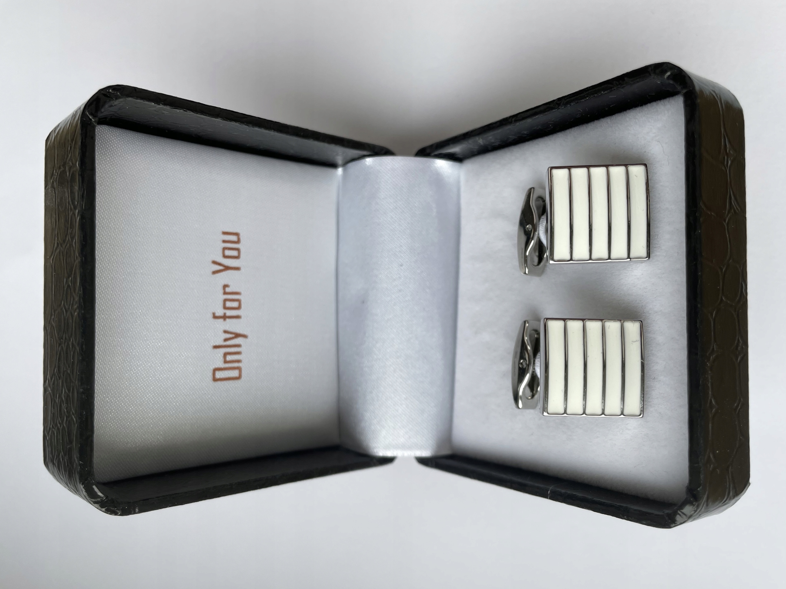 Запонки упакованы в очень элегантную коробку, идеальную для подарка, создавая готовую идею ценного и практичного подарка любимому мужчине.