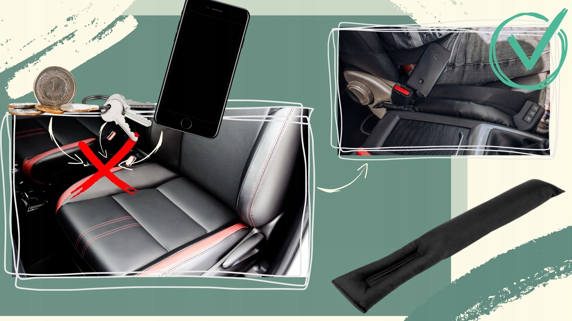 - ✅ Вы устали тянуться за телефоном, ключами или деньгами, упавшими в щель между сиденьем и консолью? Наполнитель зазоров сиденья именно для вас!