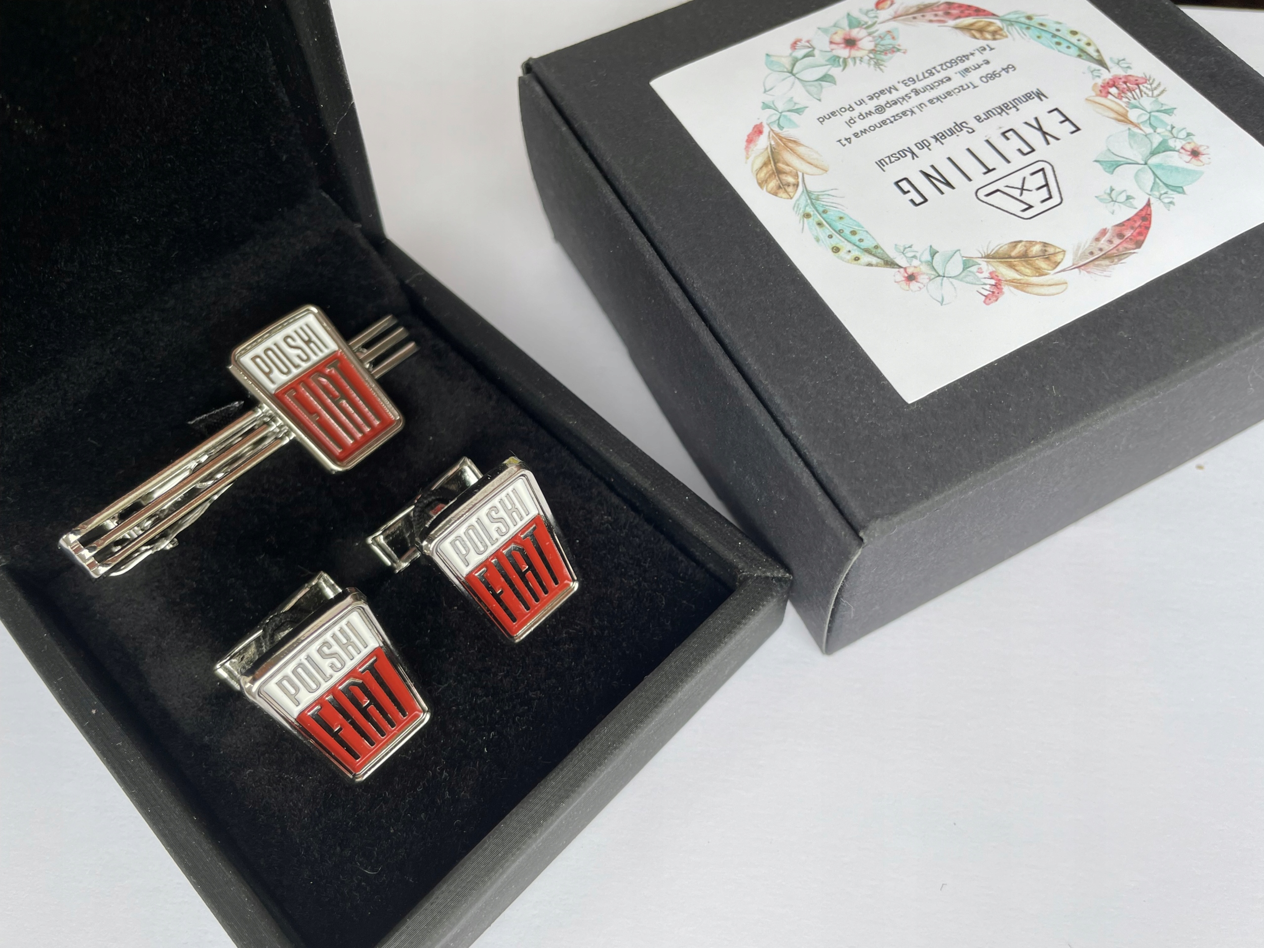 - Набор упакован в картонную коробку для запонок, размеры ок. 8 х 5 х 2,5 см. Стандартная шкатулка – черная или синяя.