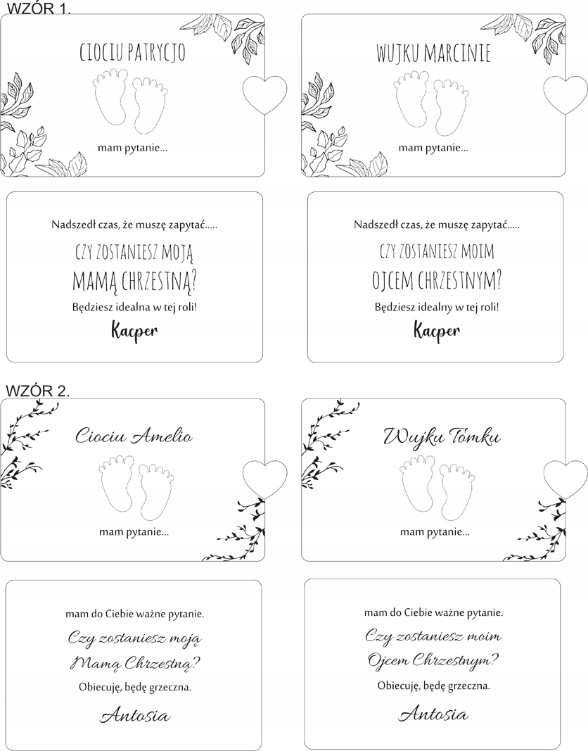 ZAPROSZENIE - PYTANIE - PROŚBA O CHRZEST, O BYCIE CHRZESTNĄ - ZŁOTE STÓPKI