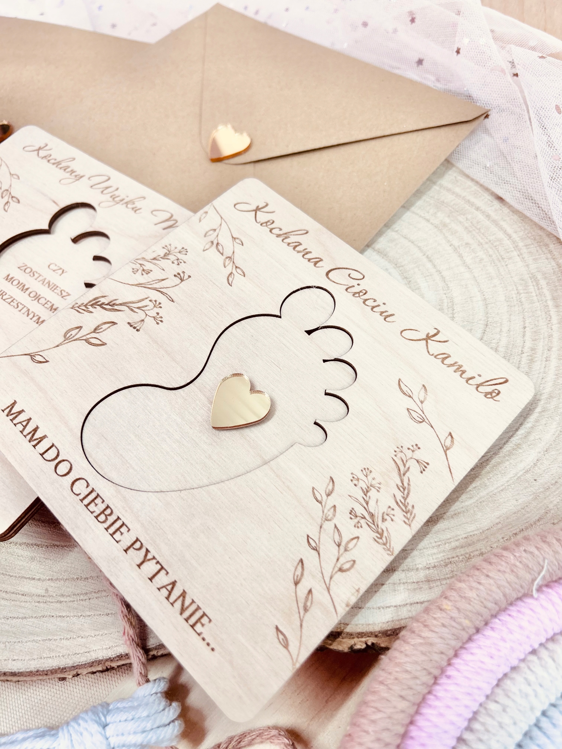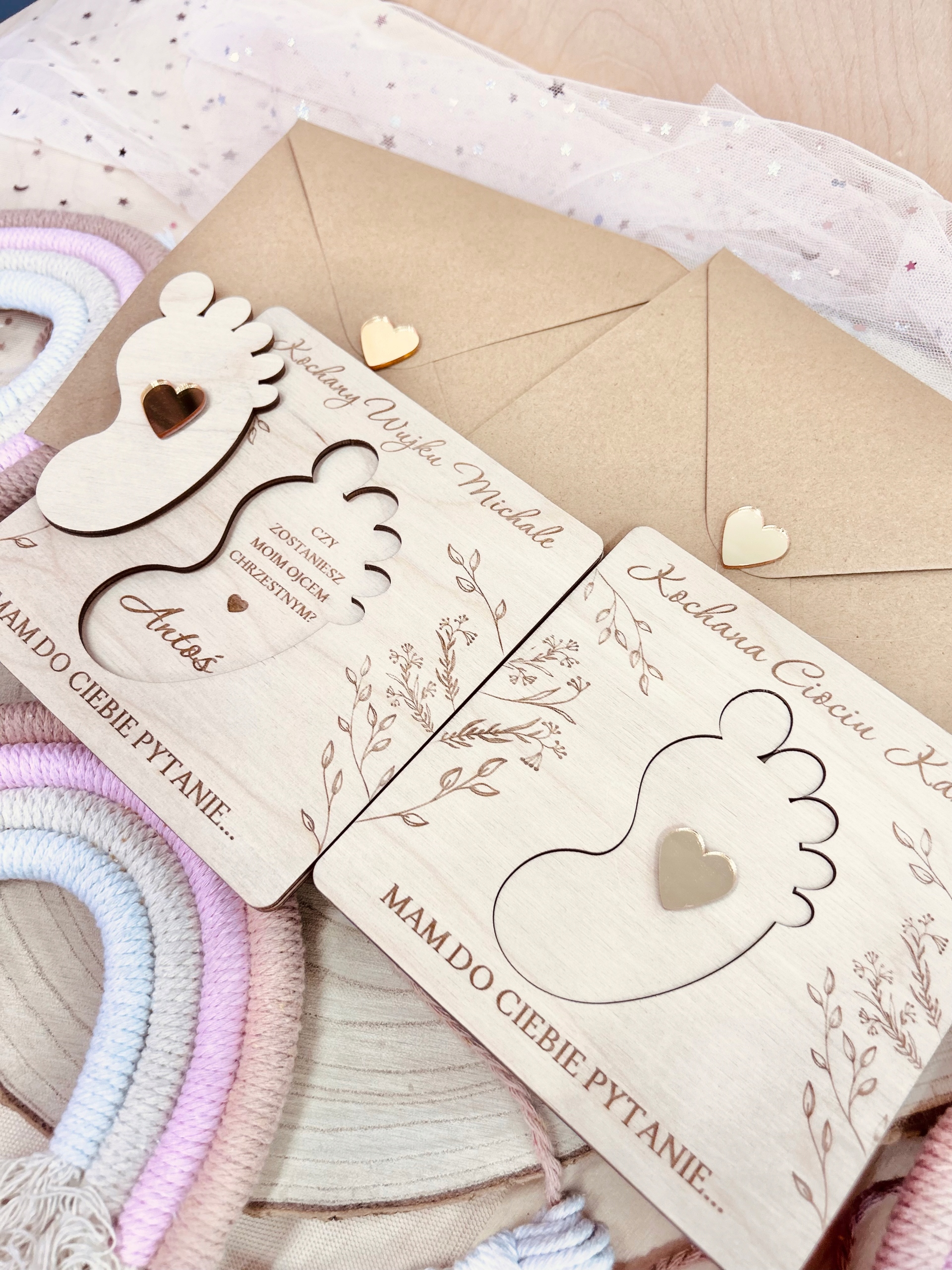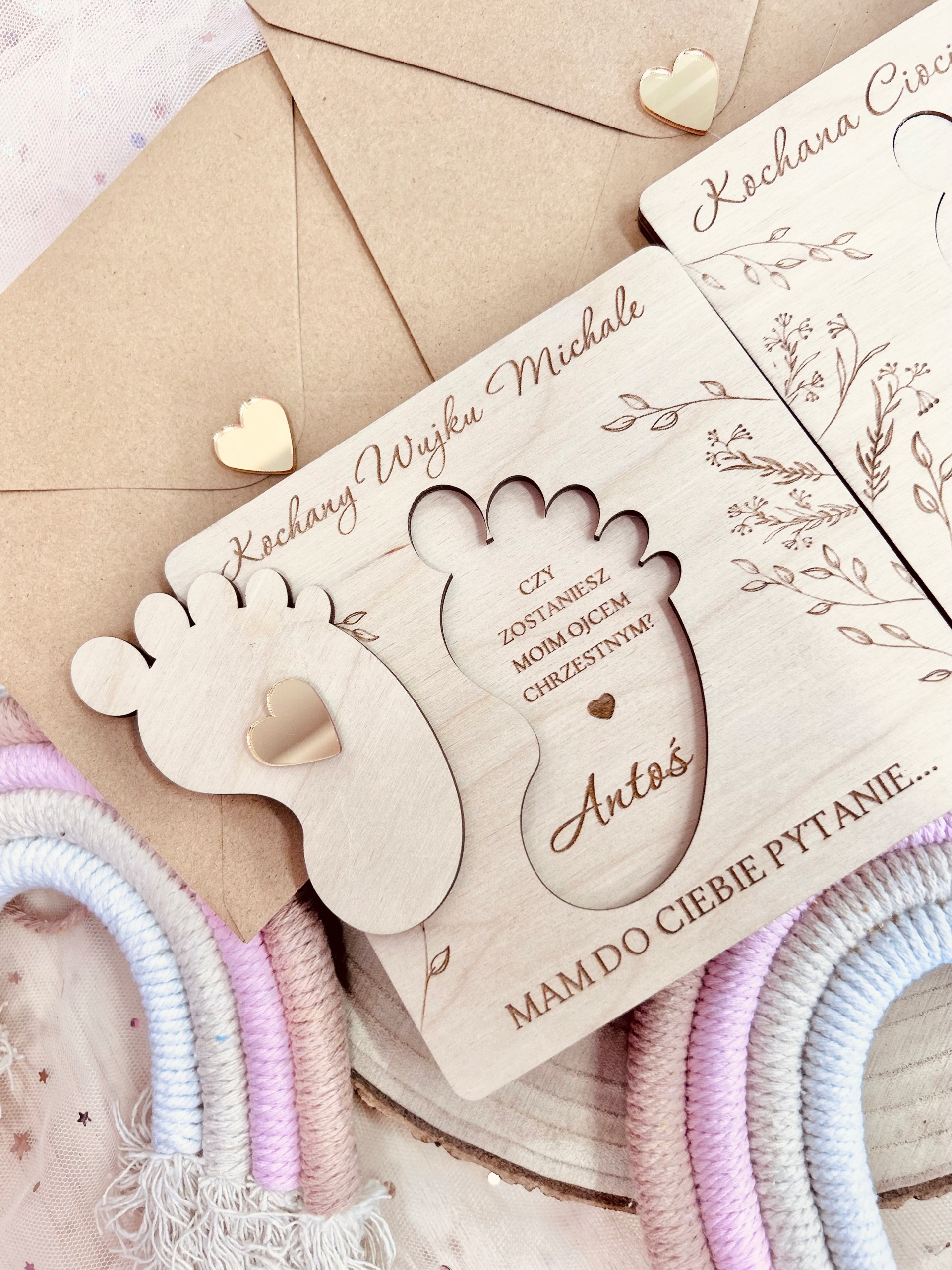 Два деревянных персонализированных приглашения для крестных родителей. Изделия изготовлены из фанеры в натуральных тонах дерева. Приглашения изготавливаются по индивидуальному заказу. Это уникальный подарок и красивый сувенир.