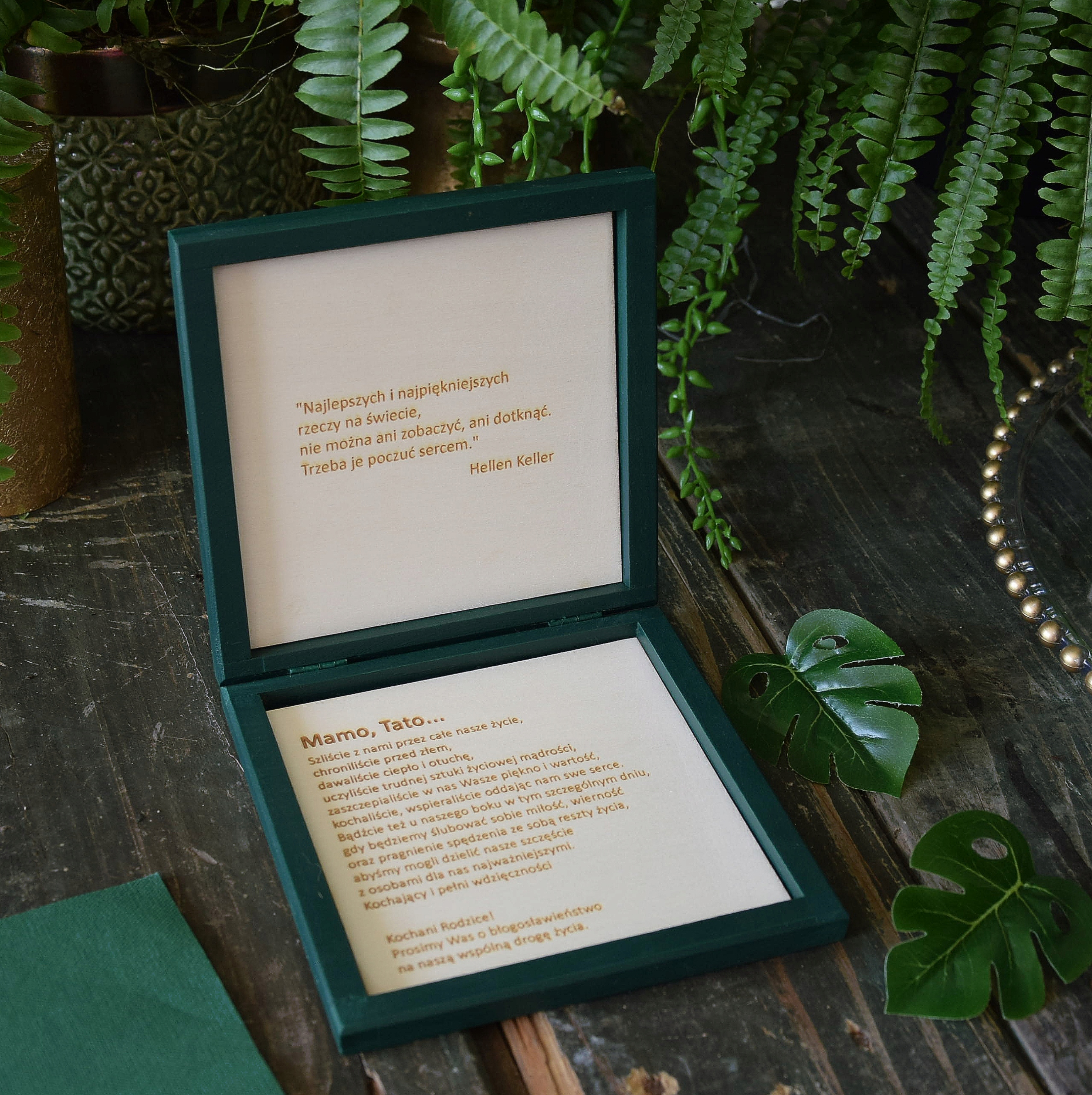 - Гравировка вне «Дорогие родители» коробки + сердце