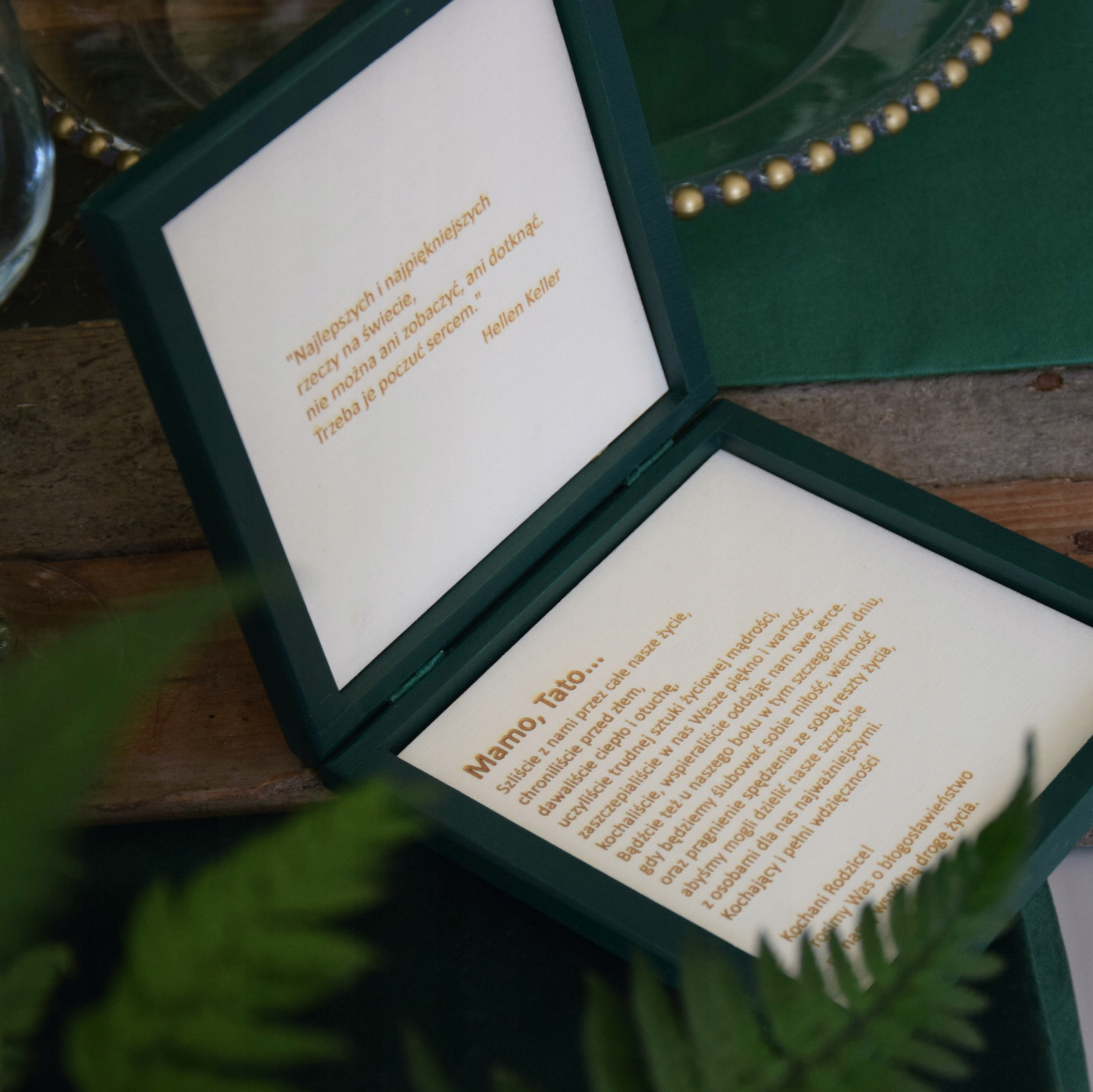 На нашем аукционе мы предлагаем приглашение на свадьбу для родителей в цвете зеленого цвета из нашей серии «Таинственный сад»