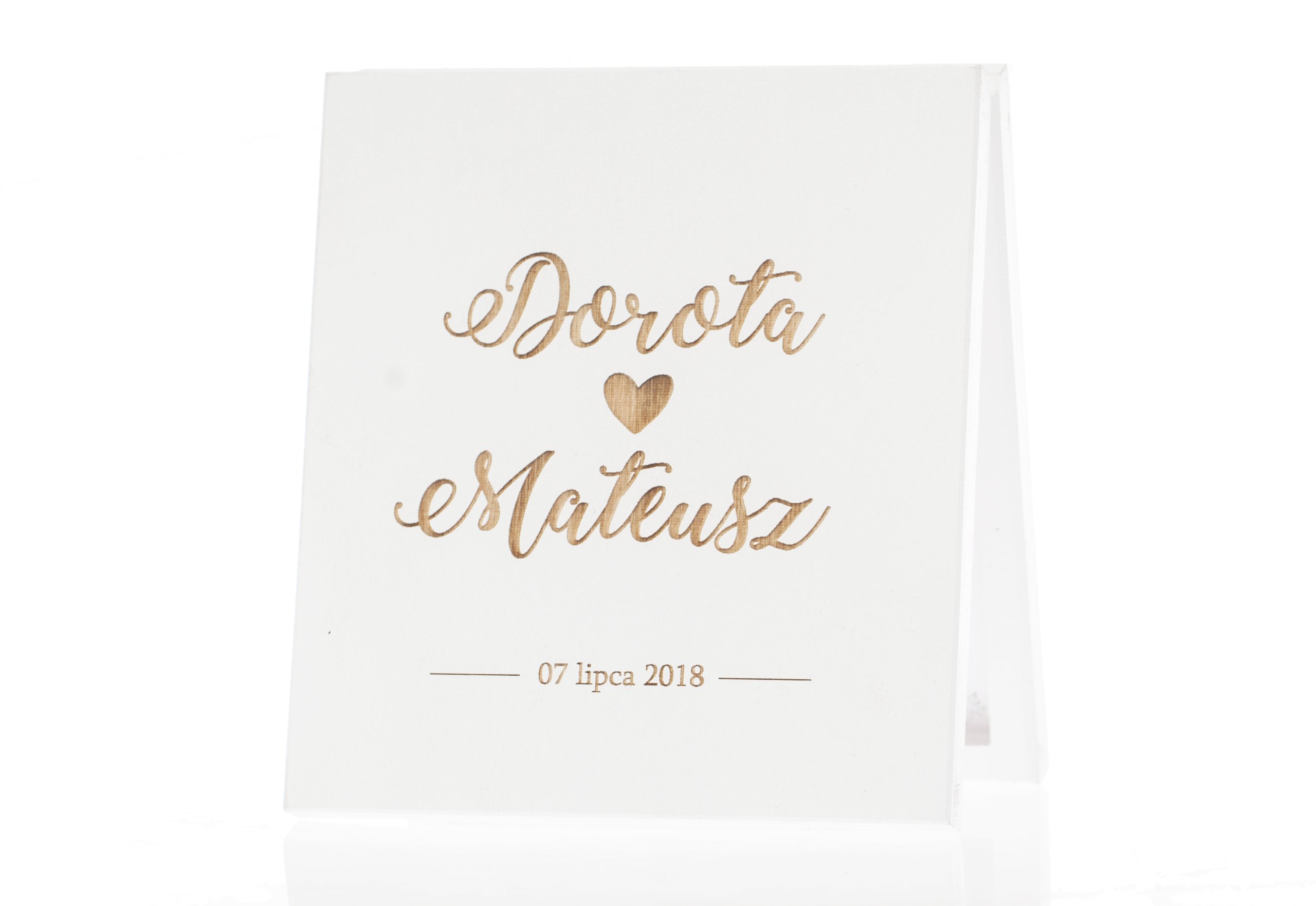 На коробку наносим имена или инициалы жениха и невесты и дату свадьбы. Графику нельзя изменить.
