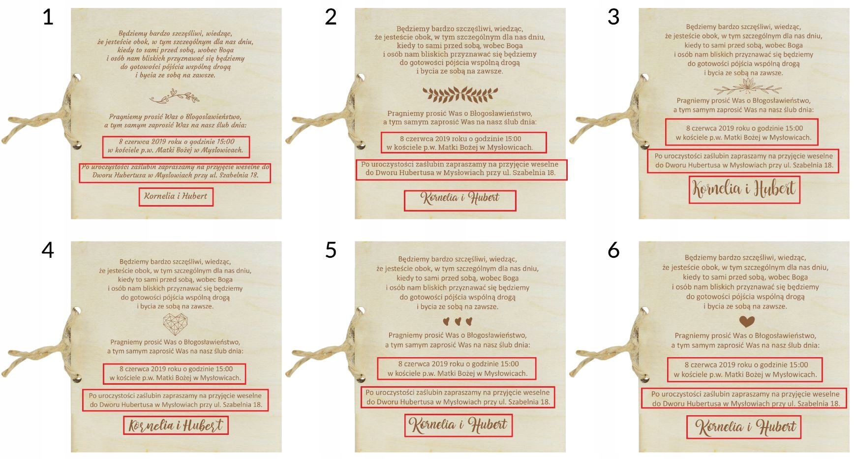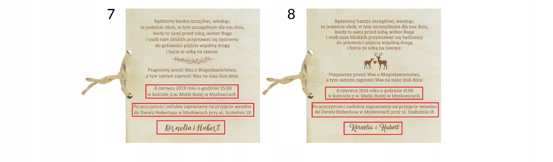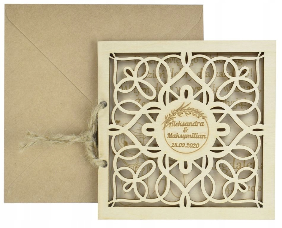 Приглашение в виде деревянной открытки станет идеальным способом подчеркнуть значимость приглашенных гостей – самых главных, то есть родителей.