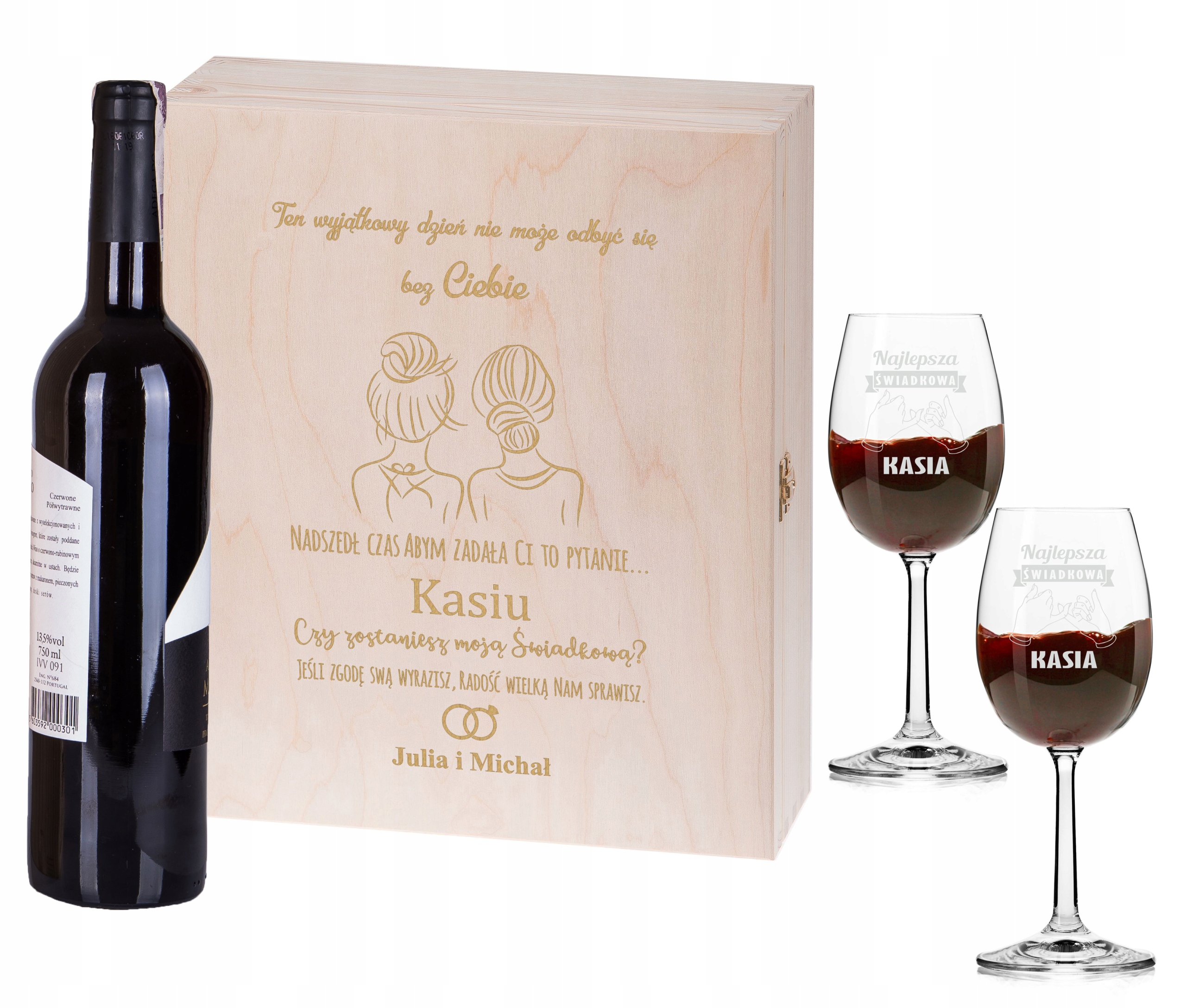 На аукционе ниже мы представляем его вам. Бокалы в деревянной винной шкатулке, как запрос в будущее СВИДЕТЕЛЬ. Вопрос, заданный в такой форме, обязательно убедит вашего друга выполнить эту важную функцию на вашем торжестве. Удивите своих свидетелей уникальной формой приглашения. Гравировка на деревянной шкатулке, несомненно, станет сувениром на очень долгое время. Этот подарок вызовет улыбку на лице каждого получателя.