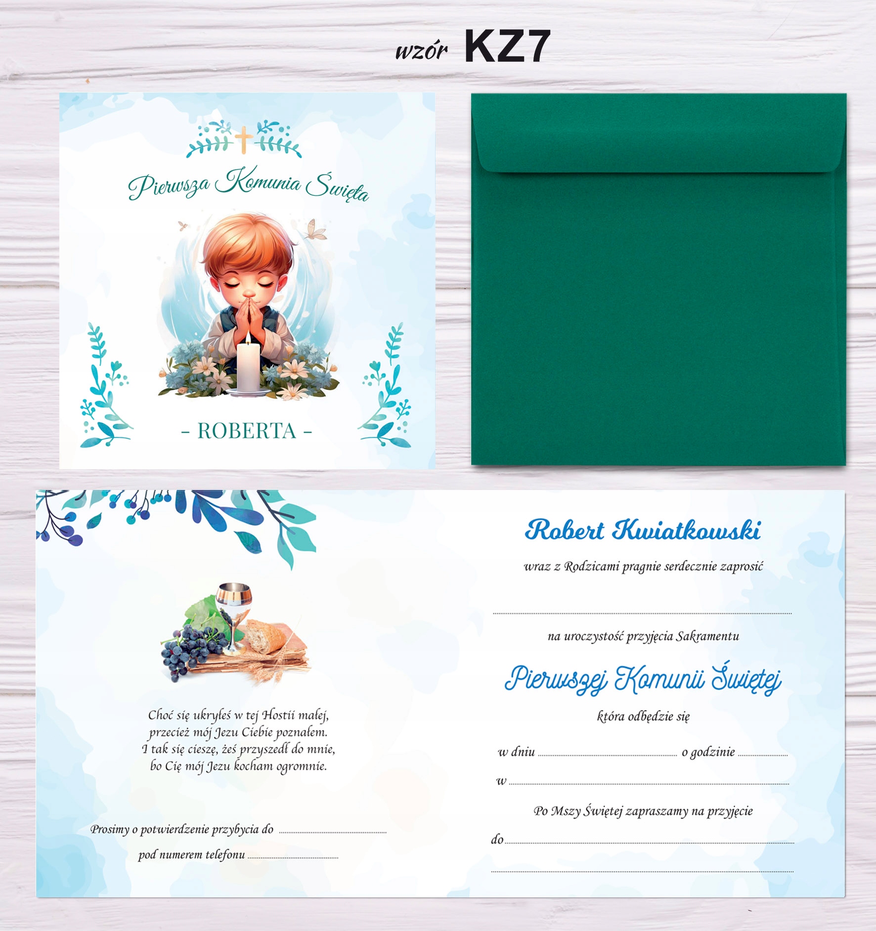 Оплачивая «Приглашение первого причастия для мальчика, имя ребенка и конверт», вы можете быть уверены, что данный товар из каталога «Причастие» будет доставлен из Польши и проверен на целостность. В цене товара, указанной на сайте, учтена доставка из Польши. Внимание!!! Товары для Евросоюза, согласно законодательству стран Евросоюза, могут отличаться упаковкой или наполнением.