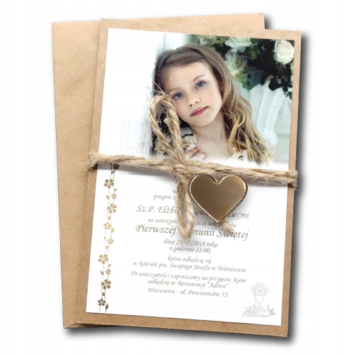 Приглашения на первое святое причастие с фотографией Eco Kraft + Golden Heart
