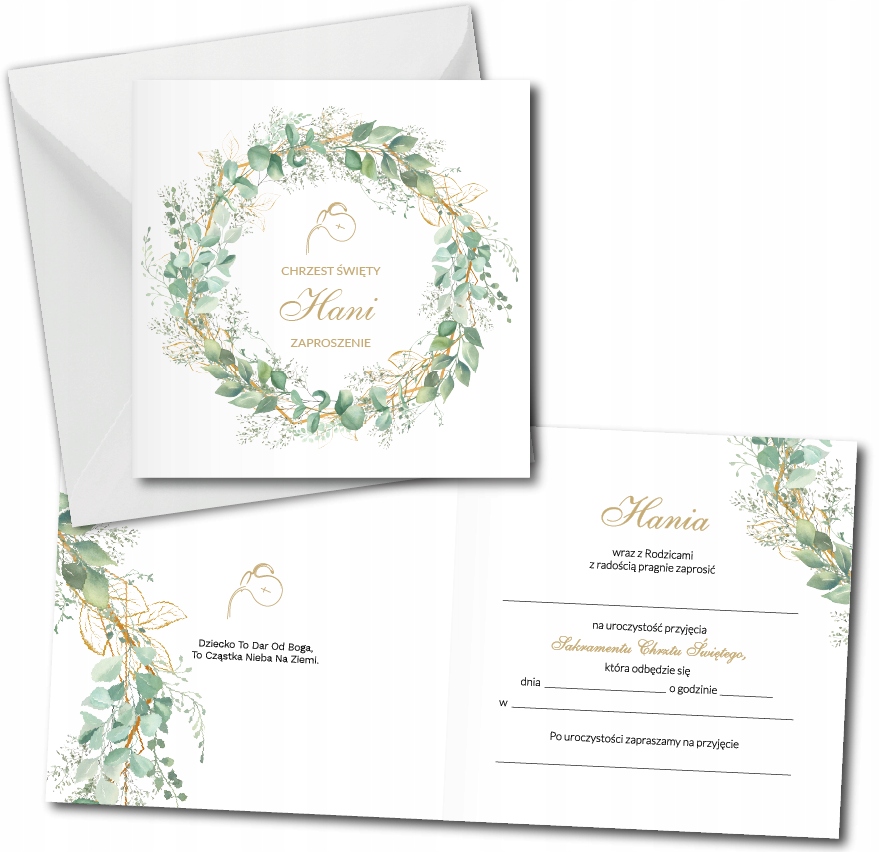 Оплачивая «Приглашение к священному крещению +имя - персонализированные листья», вы можете быть уверены, что данный товар из каталога «Крещение» будет доставлен из Польши и проверен на целостность. В цене товара, указанной на сайте, учтена доставка из Польши. Внимание!!! Товары для Евросоюза, согласно законодательству стран Евросоюза, могут отличаться упаковкой или наполнением.