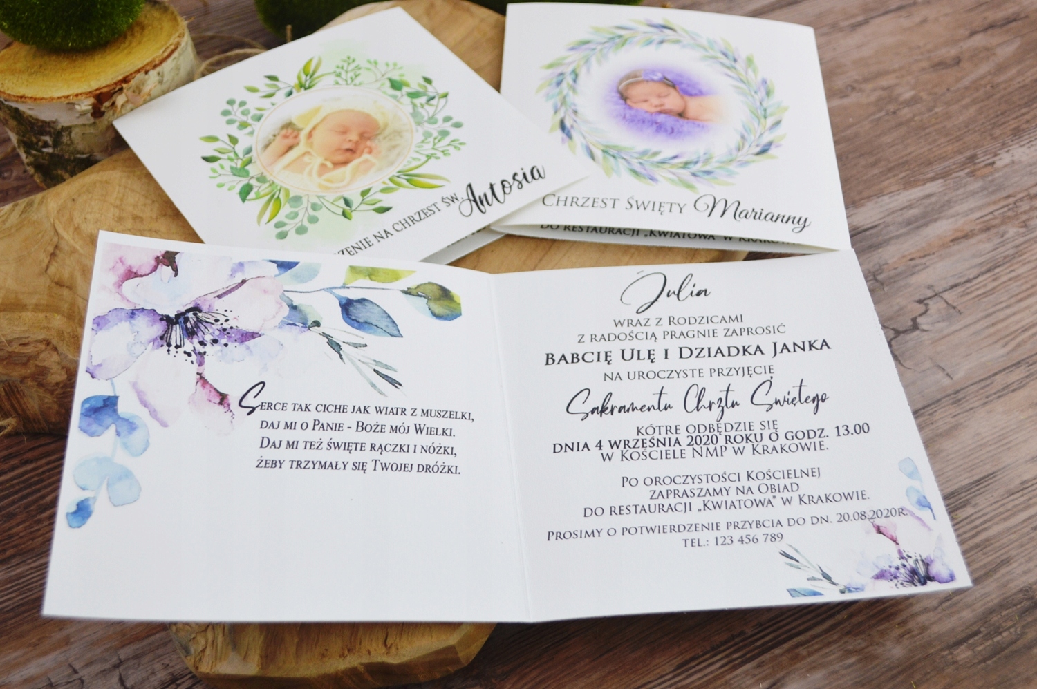 Красивые приглашения с фотографией ребенка для святого крещения.