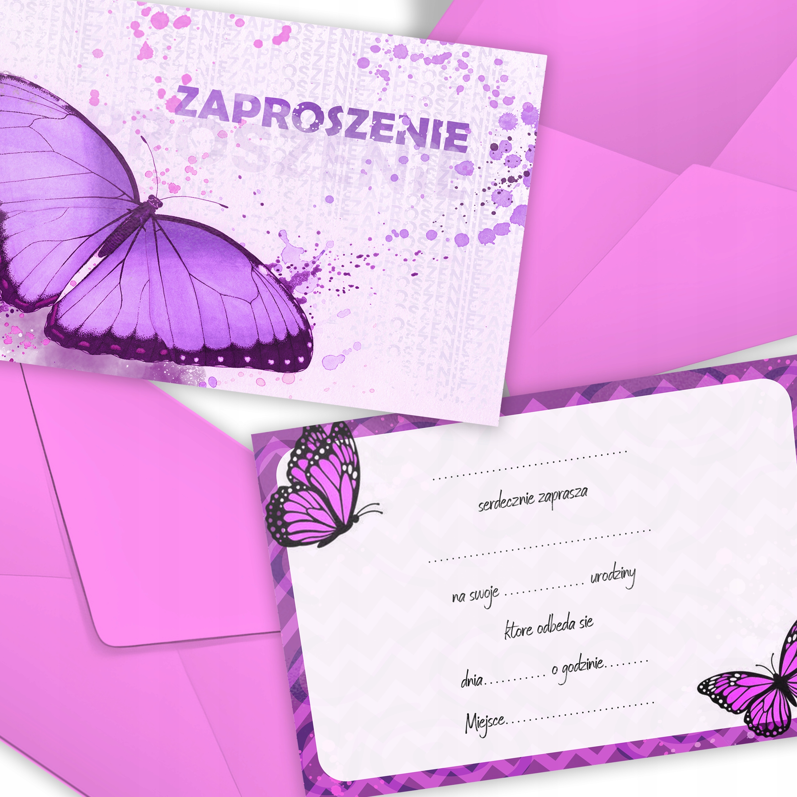 ZAPROSZENIE MOTYL MOTYLE MOTYLKI ZAPROSZANIA URODZINOWE + KOPERTY GRATIS