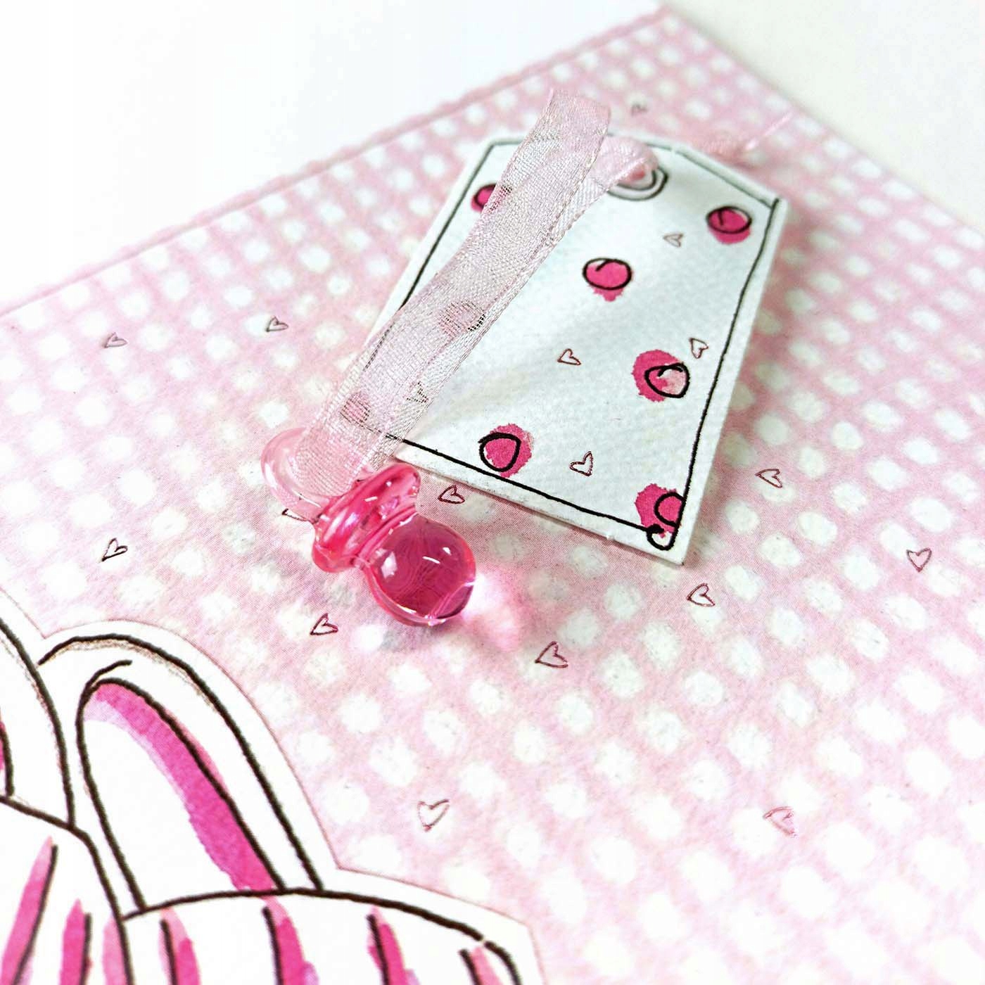 Приглашение на день рождения выполнено из качественной матовой фактурной бумаги. На обложке изображена розовая обувь. Розовая соска, прикрепленная к чехлу, добавляет очарования. Текстовый принт для самостоятельной регистрации выполнен на матовой розовой вставке. Они сделаны с большой тщательностью и вниманием к деталям.