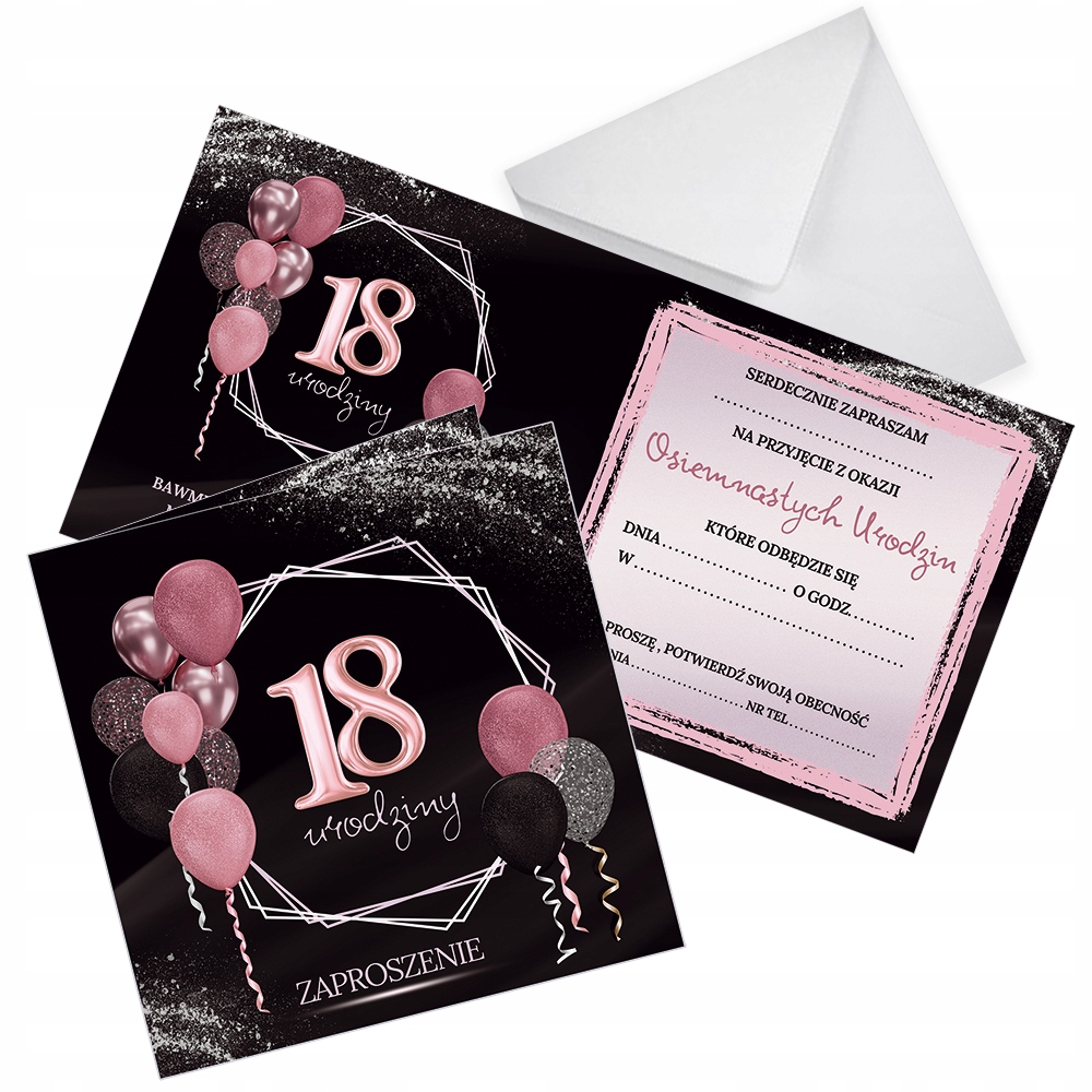 Zaproszenia na 18 Urodziny Różowe Balony /Biała Koperta Z11_42