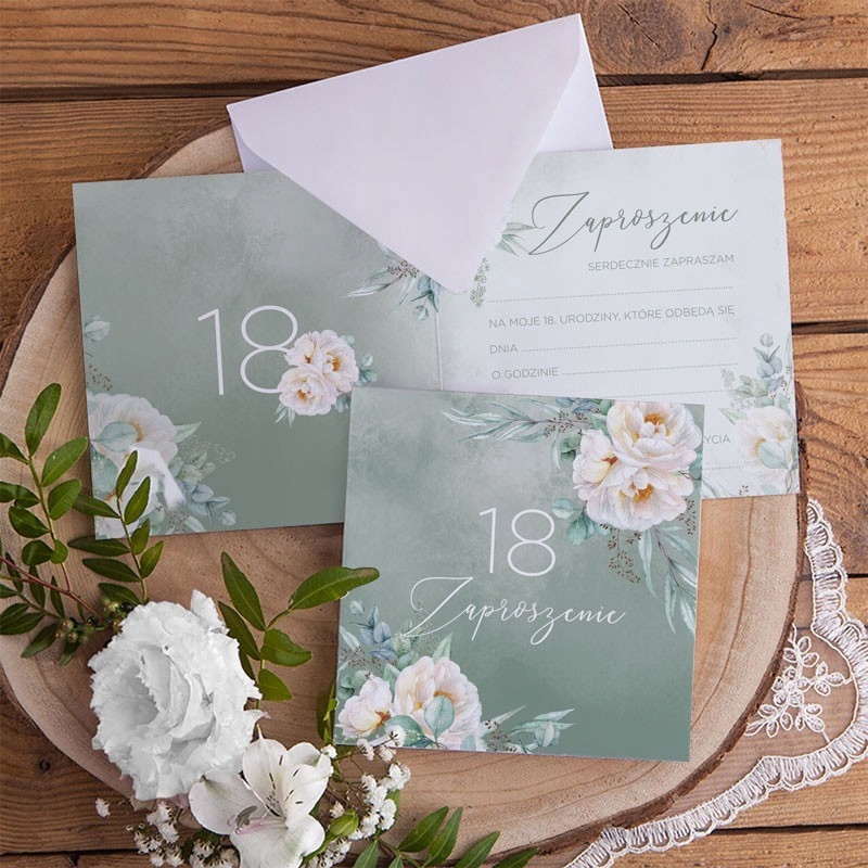 ПРИГЛАШЕНИЯ на 18 лет Пион и Эвкалипт 10 шт (+конверты)