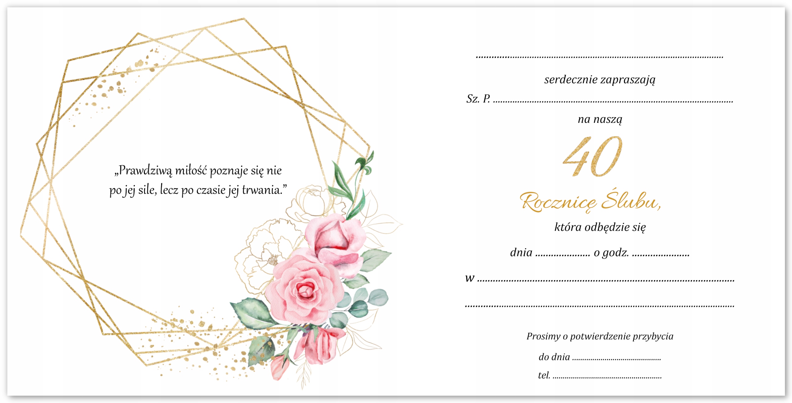 Приглашение на 40-летие свадьбы с конвертом