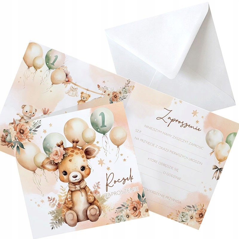 ЗАПРОШЕННЯ на день народження бохо Жираф 10 шт (+конверти)