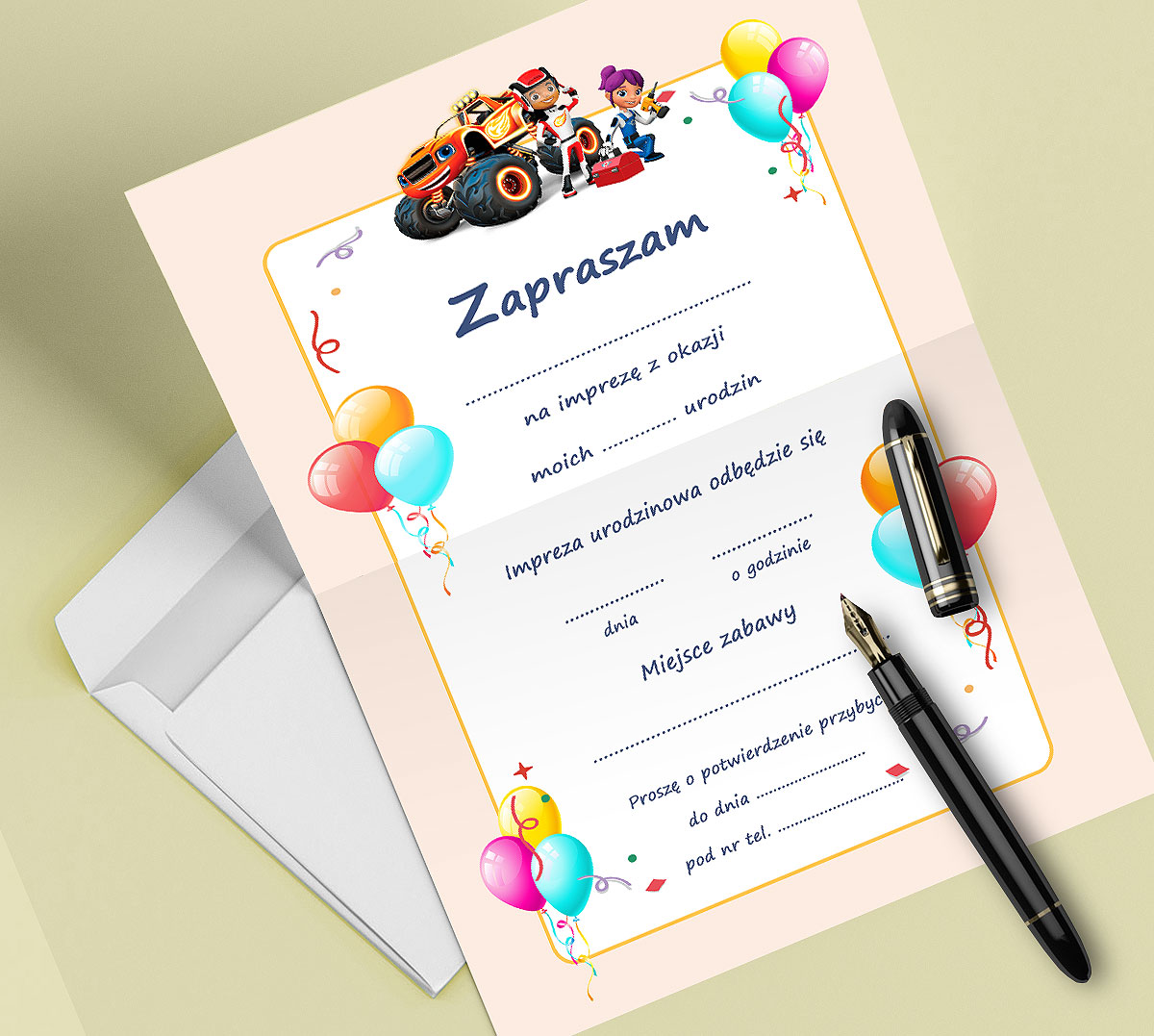 ПРИГЛАШЕНИЕ BLAZE AND MEGA MACHINES НА ДЕНЬ РОЖДЕНИЯ РЕБЕНКА + БЕСПЛАТНЫЙ КОНВЕРТ