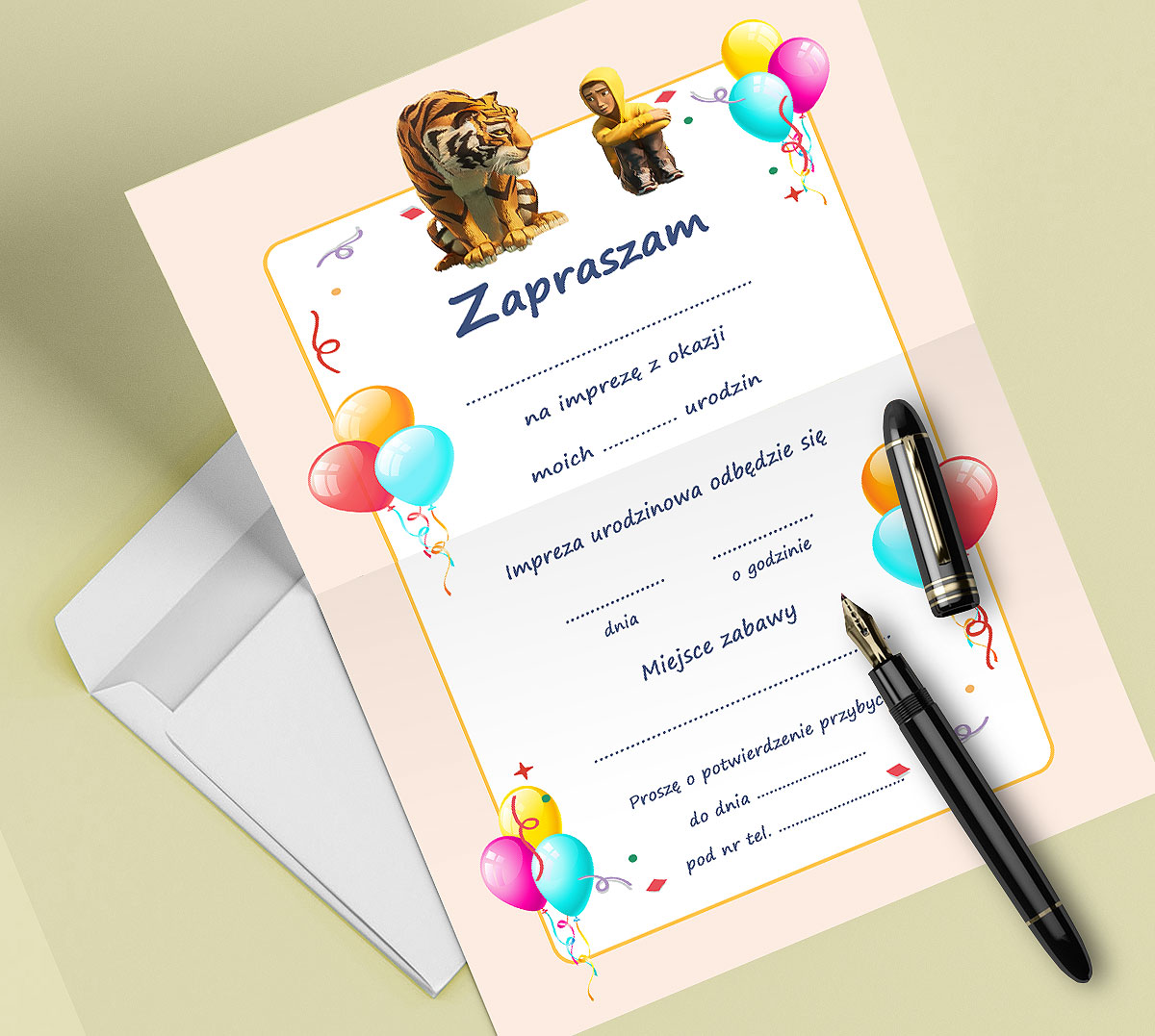 ПРИГЛАШЕНИЕ ТИГРОВОГО ЗАЯВИТЕЛЯ НА ДЕНЬ РОЖДЕНИЯ РЕБЕНКА + БЕСПЛАТНЫЙ КОНВЕРТ