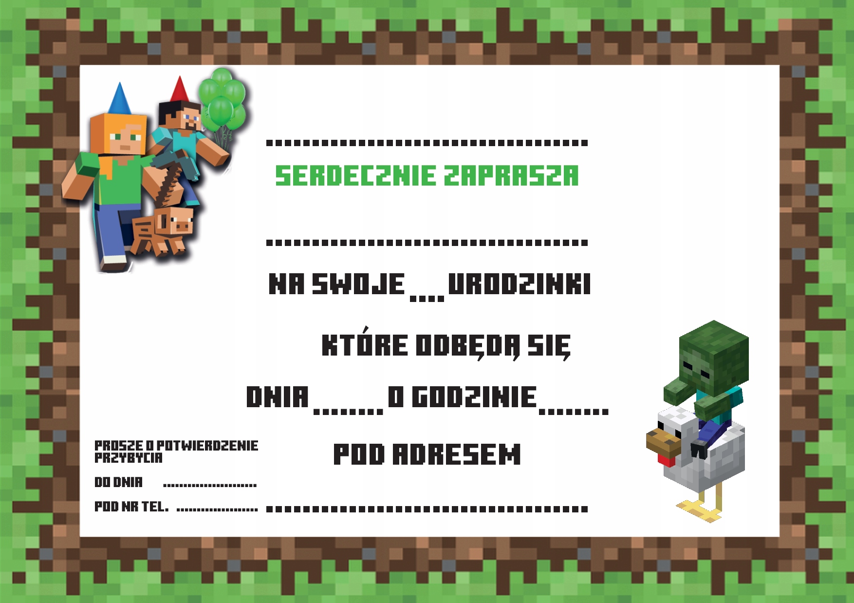 Просматривая «Приглашения на день рождения Minecraft для детей A6 Высокое качество + конверт», вы можете быть уверены, что данный товар из каталога «[rubrica_name]» будет доставлен из Польши и проверен на целостность. В цене товара, указанной на сайте, учтена доставка из Польши. Внимание!!! Товары для Евросоюза, согласно законодательству стран Евросоюза, могут отличаться упаковкой или наполнением.