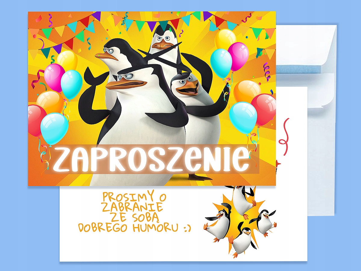 ПРИГЛАШЕНИЕ НА ДЕНЬ РОЖДЕНИЯ ПИНГВИНЫ ИЗ МАДАГАСКАРА ПРИГЛАШЕНИЯ + КОНВЕРТ