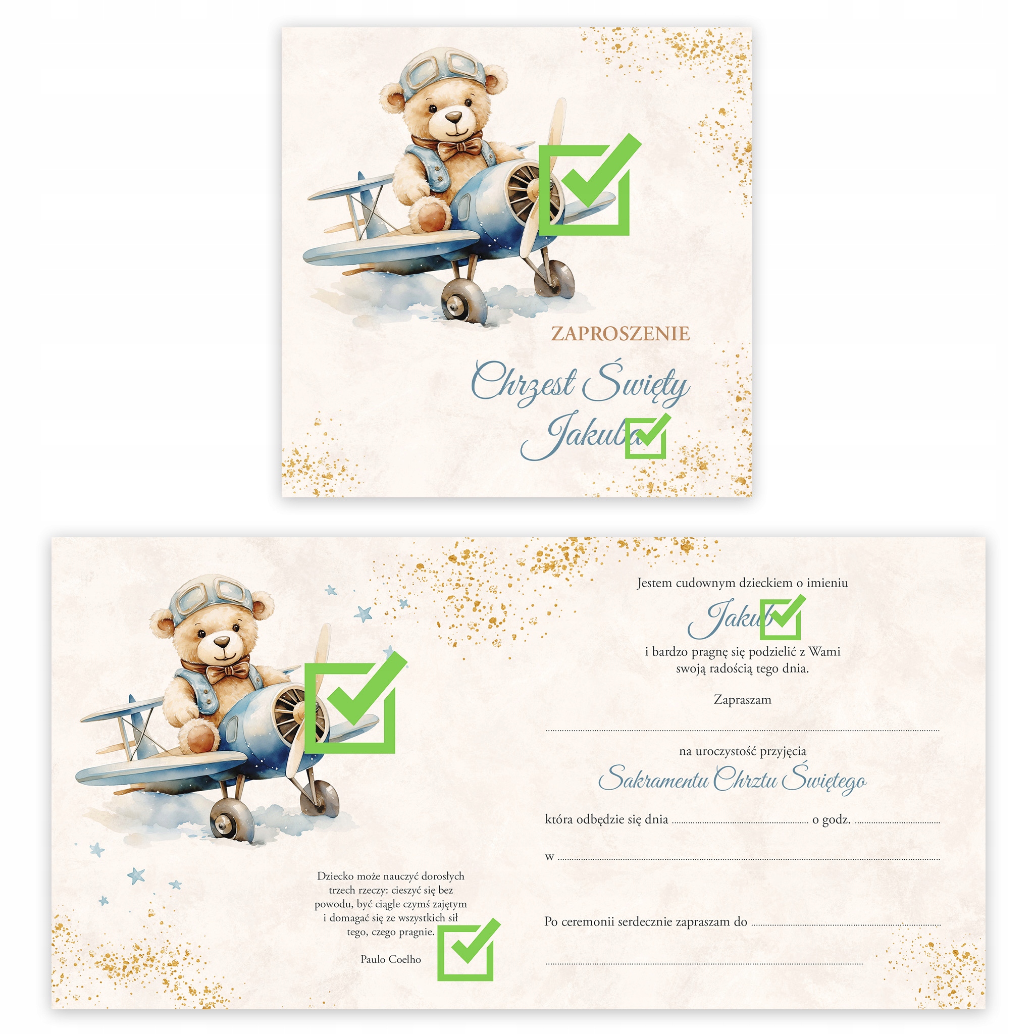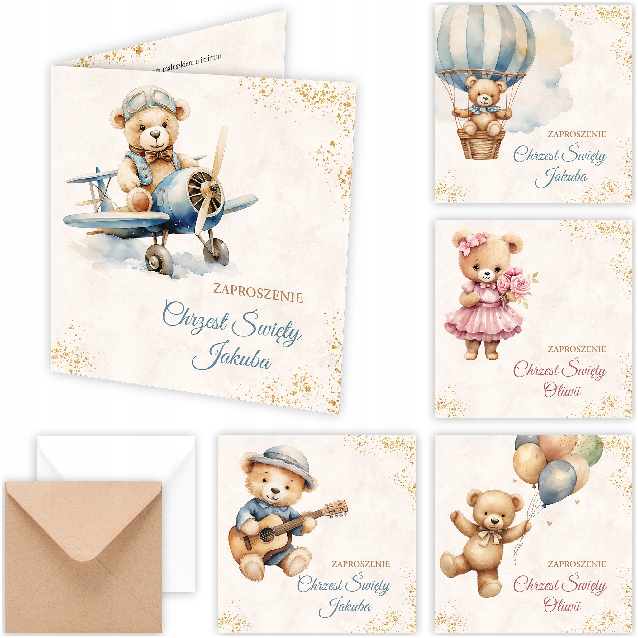 Приглашение к крещению + имя ребенка + конверт - медведь мотив