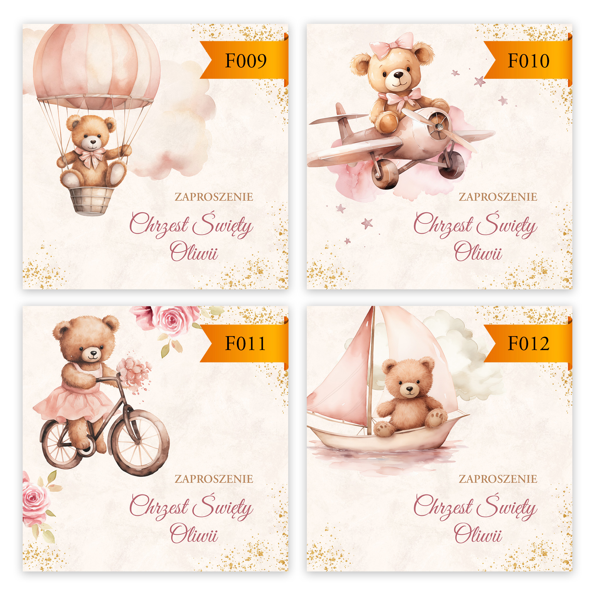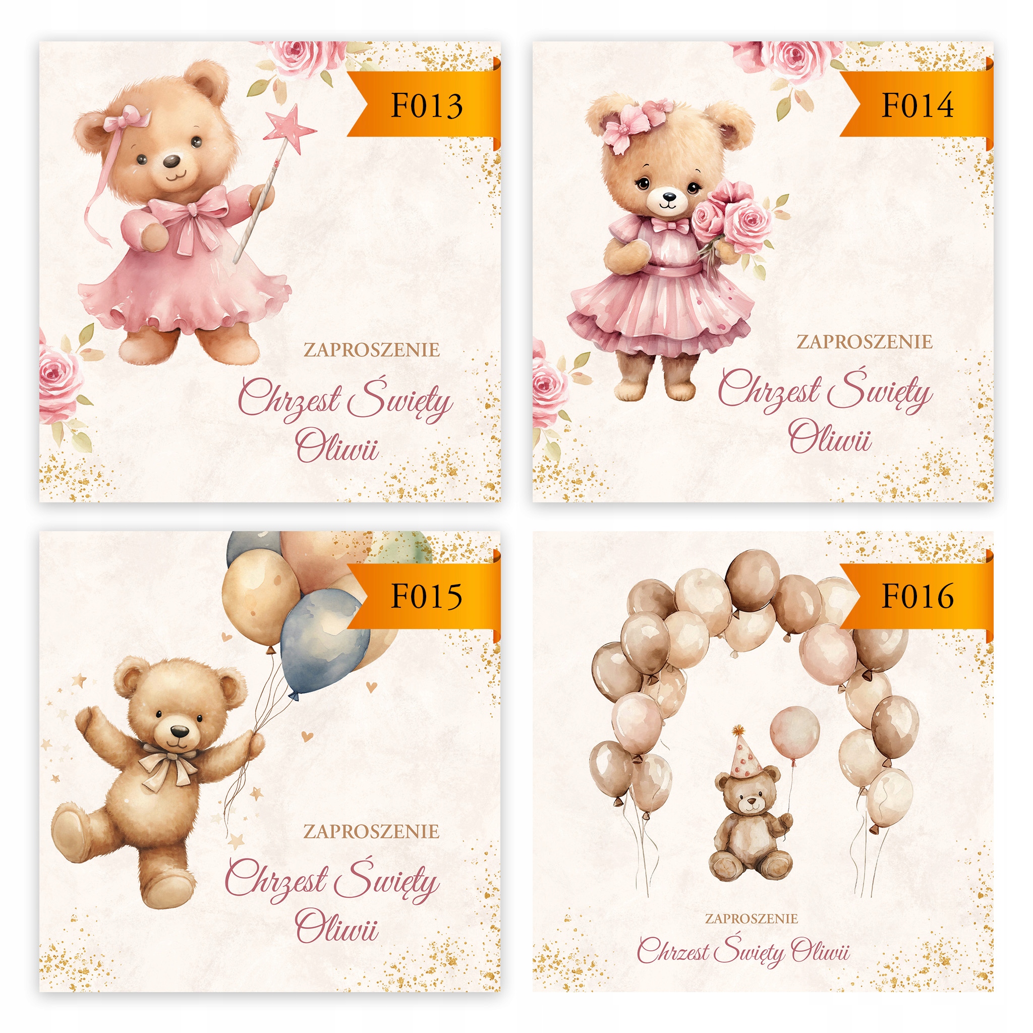 Приглашение к крещению + имя ребенка + конверт - медведь мотив