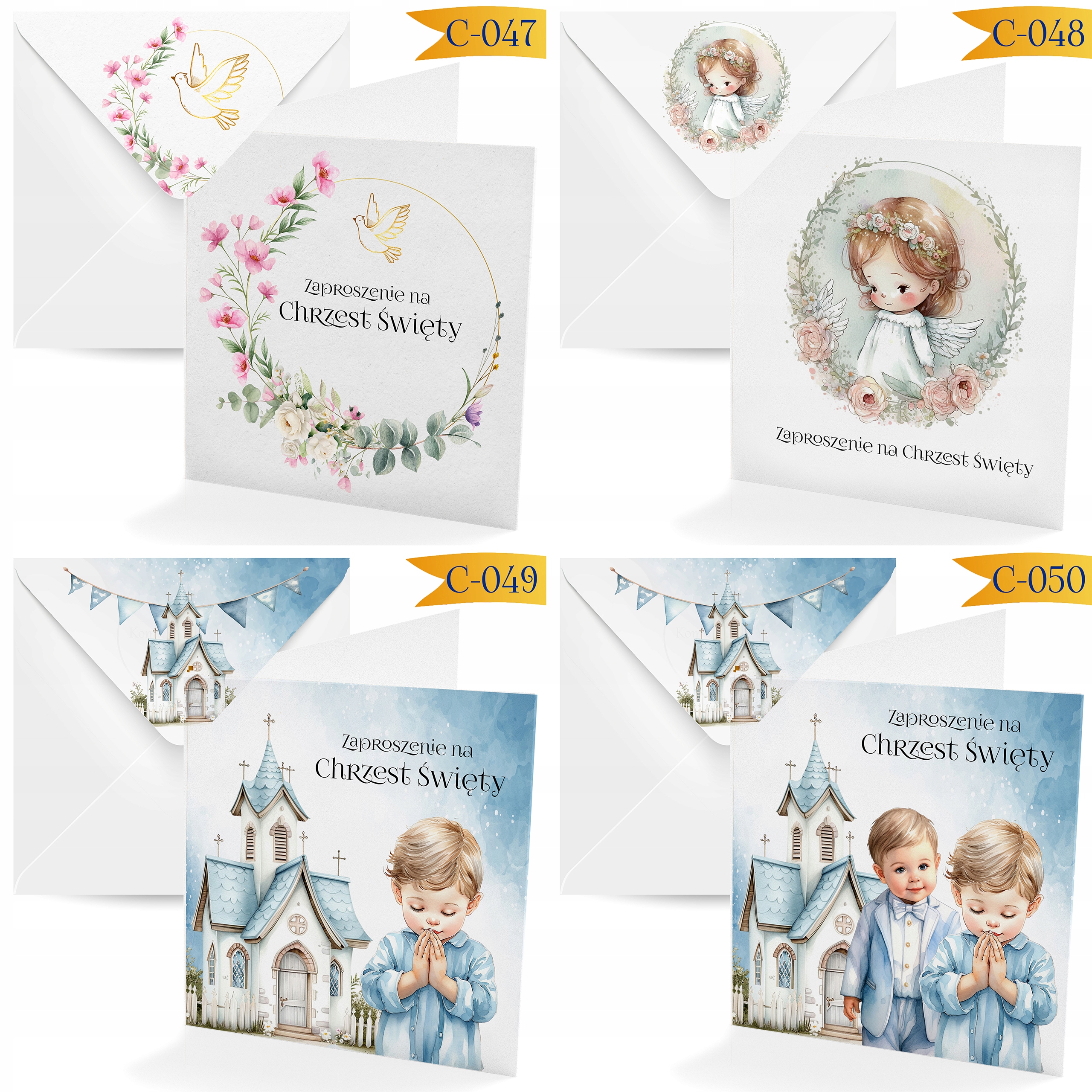 ПРИГЛАШЕНИЯ НА КРЕЩЕНИЕ ДЕВОЧКИ И МАЛЬЧИКА + КОНВЕРТ С НАПЕЧАТАННЫМ [C043]